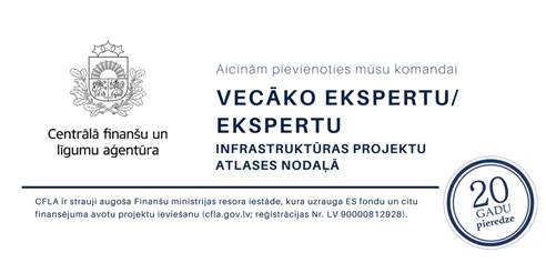 CV, motivācijas vēstuli desmit dienu laikā no paziņojuma publicēšanas oficiālajā izdevumā "Latvijas Vēstnesis" sūti Centrālajai finanšu un līgumu aģentūrai uz e-pasta adresi cfla@cfla.gov.lv ar norādi "Infrastruktūras projektu atlases nodaļas vecākais eksperts/eksperts".