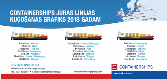 CONTAINERSHIPS jūras līnijas kuģošanas grafiks 2018. gadam