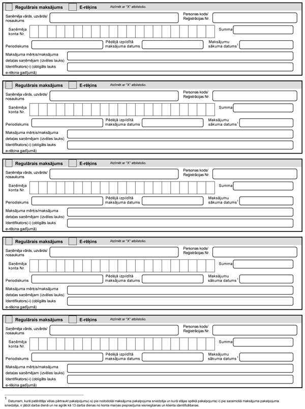 12.1.1. sarakstu ar esošajiem kredīta pārveduma regulāro maksājumu rīkojumiem, uz kuriem tiek attiecināta maiņa;