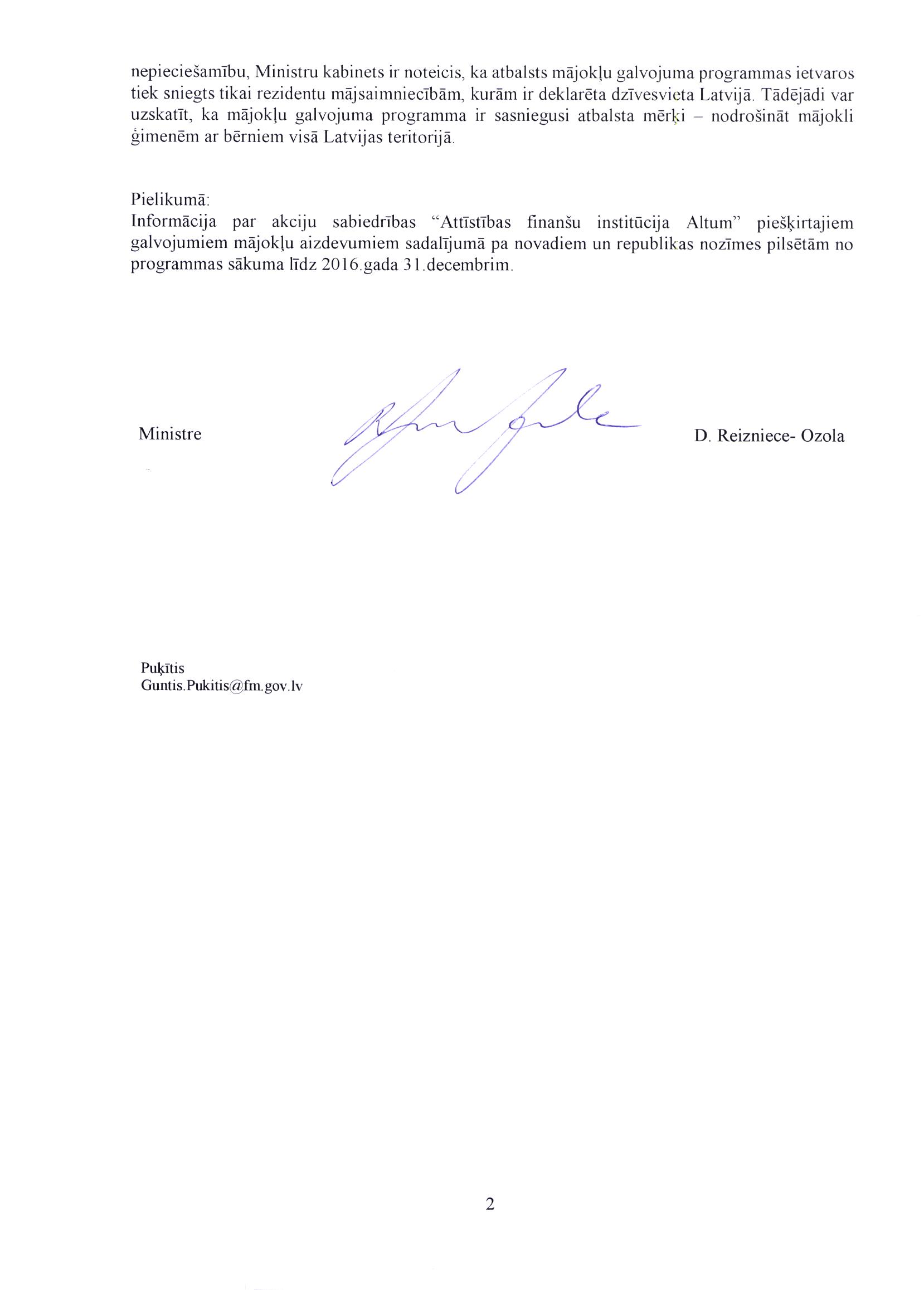 Manā rīcībā ir informācija, ka šādus galvojumus ir saņēmuši cilvēki, kuri nav Latvijas pilsoņi vai nepilsoņi, tātad trešo valstu pilsoņi. Vai jūs uzskatāt, ka "Altum", izsniedzot šāda veida galvojumus, un Ministru kabinets, neizdodot noteikumus ar tādu regulējumu, lai šī programma būtu pieejama tikai Latvijas pilsoņu un nepilsoņu ģimenēm, rīkojas pareizi, un vai jūs kā ministre kaut ko darīsiet, lai novērstu to, ka nākotnē cilvēki, kuri nav Latvijas pilsoņi vai nepilsoņi, var saņemt šāda veida galvojumus?