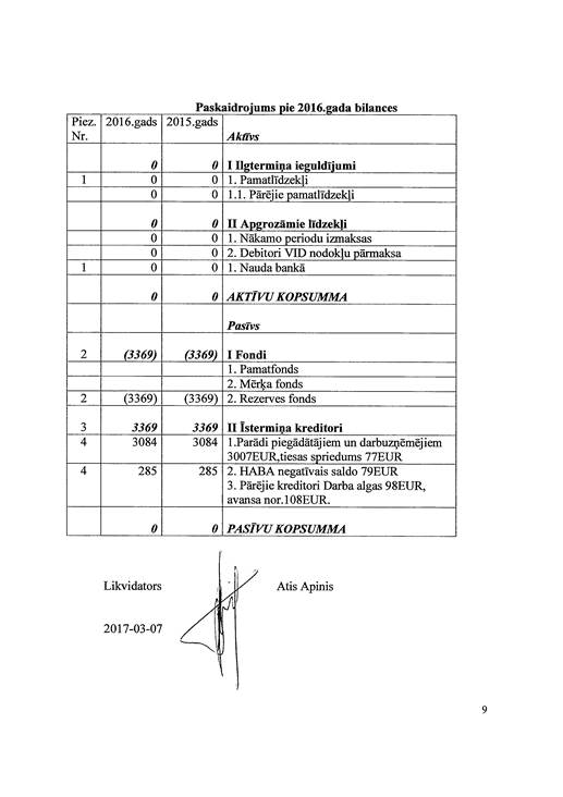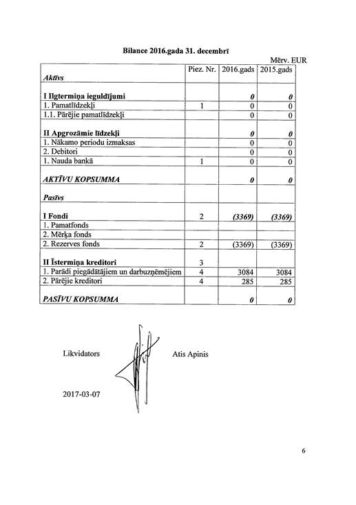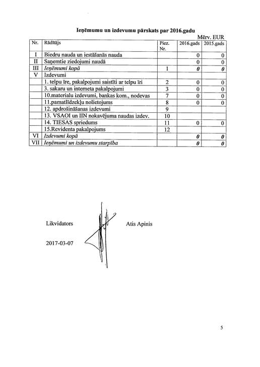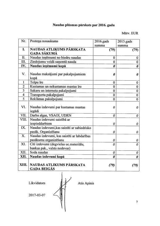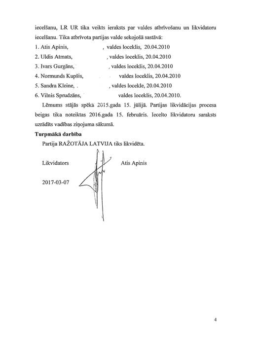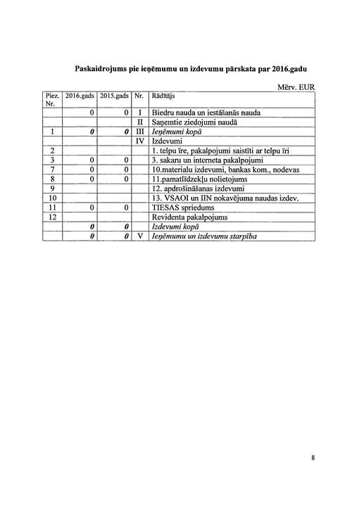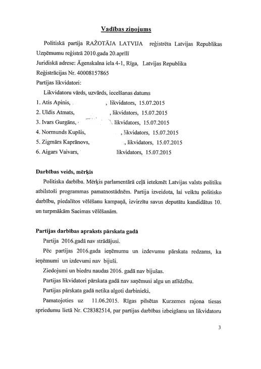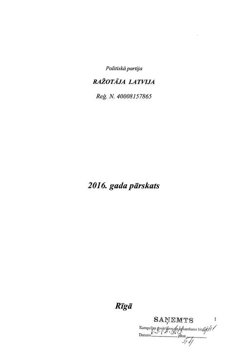 Politiskās partijas "Ražotāja Latvija", reģ. Nr. 40008157865, gada pārskats par 2016. gadu