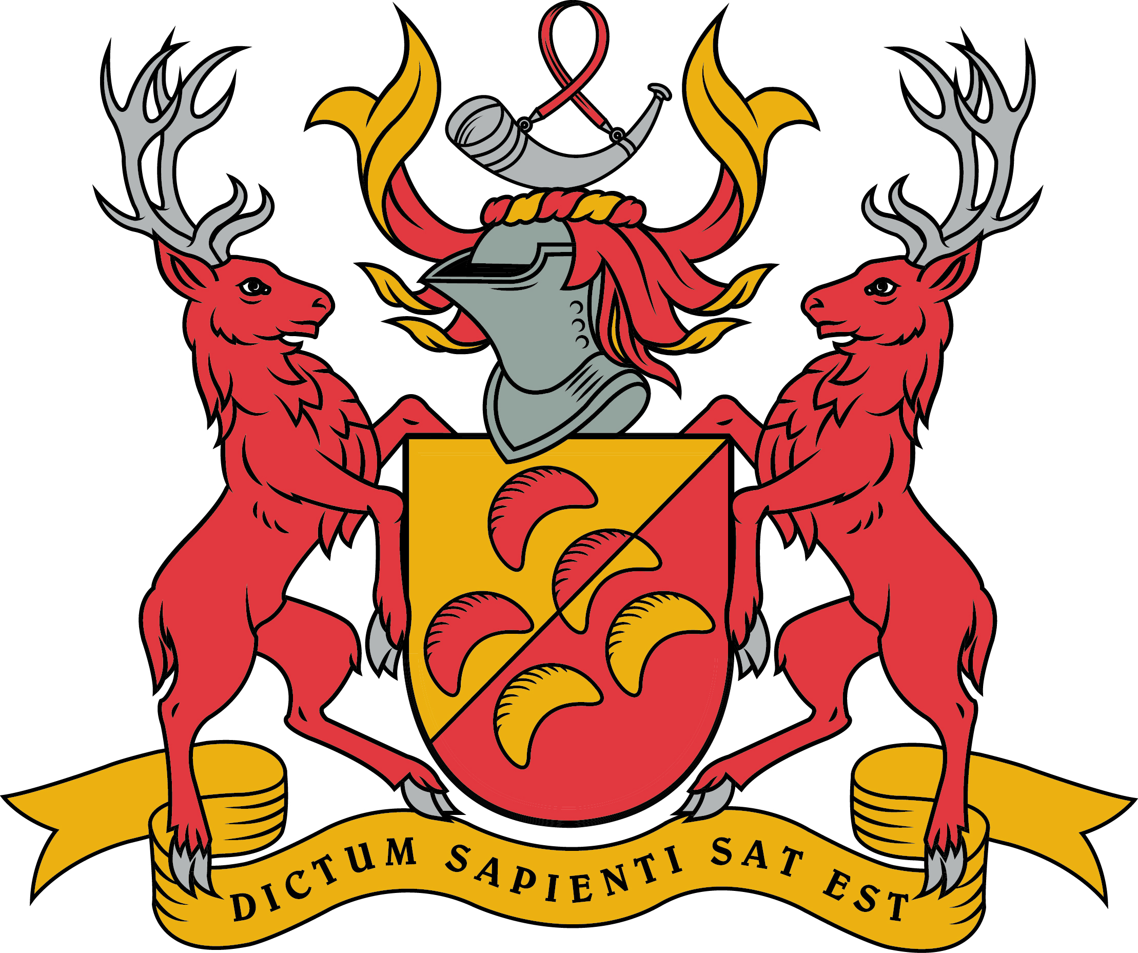 5. Valda Pīrāga dzimtas ģerbonis (Šķelts no kreisās ar zeltu un sarkanu, kreisās spāres virzienā likti pieci (3/2) lejupvērsti pīrāgi – no viena uz otru. Pa labi vērsta tērauda smailķivere, pārsegta ar sarkanu-zelta grīsti, kleinodā sudraba medību rags ar sarkanu augšupvērstu vienreiz savērptu lentu; lambrekeni: sarkans ar zeltu. Vairoga turētāji – sarkani staltbrieži ar sudraba ragiem un tādiem pašiem nagiem. Devīze ar melnu uz zelta lentes: DICTUM SAPIENTI SAT EST – reģistrēts 2017.gada 18.aprīlī (5.pielikums);