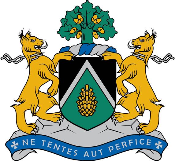 2. Rolanda Klinča dzimtas ģerbonis (Dalīts ar sudraba šaurševronu: melns un zaļš. Apakšējā laukā zelta augšupvērsts priedes čiekurs. Vairogs pārsegts ar zilu-sudraba grīsti, kleinodā zaļš izaugošs ozols ar zelta zīlēm. Uz sudraba lēzenas klints pamatnes divi vairoga turētāji – zelta lūši, bruņoti ar sudrabu, ar tādām pašām atpakaļvērstām ķēdēm ap kaklu. Devīze ar sudrabu uz zilas lentes: + NE TENTES AUT PERFICE +) – reģistrēts 2017.gada 25.aprīlī (2.pielikums).