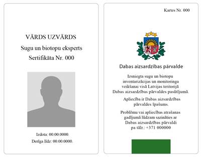 Visiem ekspertiem, dodoties dabā, ir jābūt līdzi Dabas aizsardzības pārvaldes izdotām noteikta parauga eksperta apliecībām, kas jāuzrāda zemes īpašniekam pēc to lūguma. Apliecībā būs iekļauts arī Dabas aizsardzības pārvaldes kontakttālrunis, kur nepieciešamības gadījumā iegūt papildu informāciju