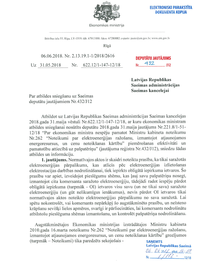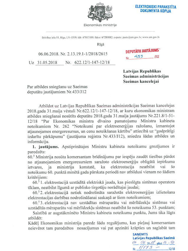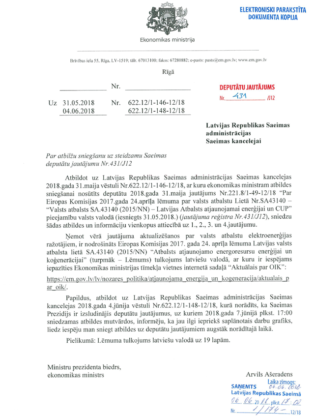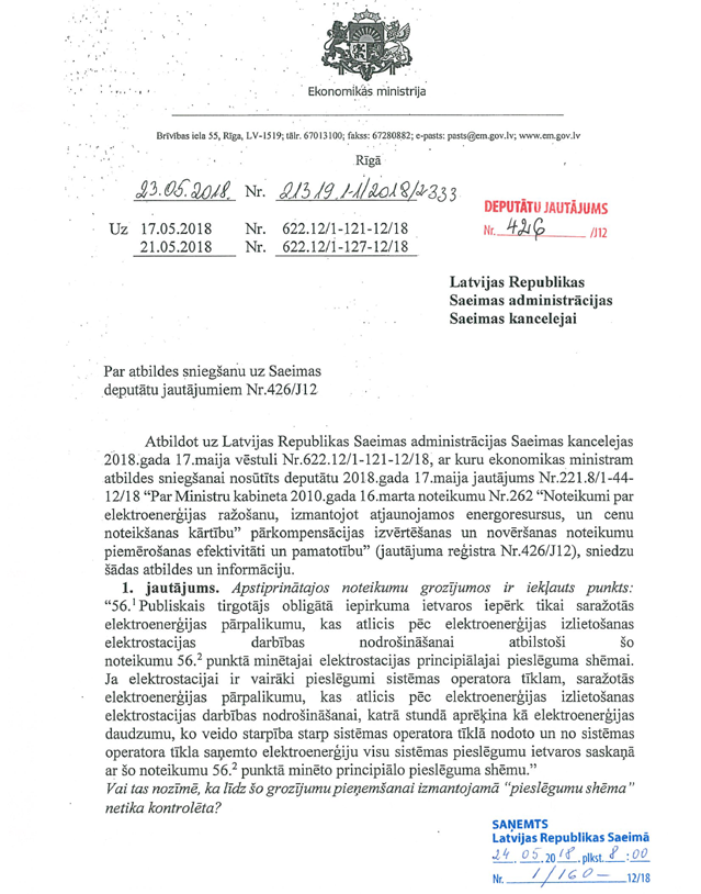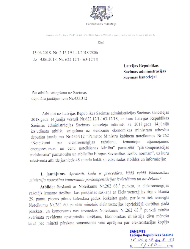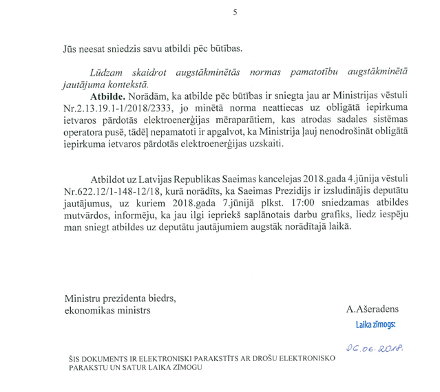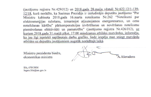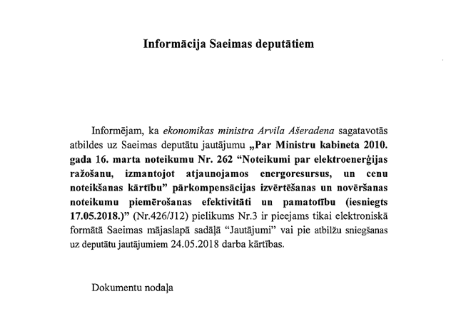 Kolēģi! Ļoti aicinu jūs pievērst uzmanību tam, lai šis likumprojekts neizmaksātu Latvijas iedzīvotājiem un Latvijas sabiedrībai tik, cik jau ir izmaksājis obligātais iepirkums elektroenerģijas jomā.