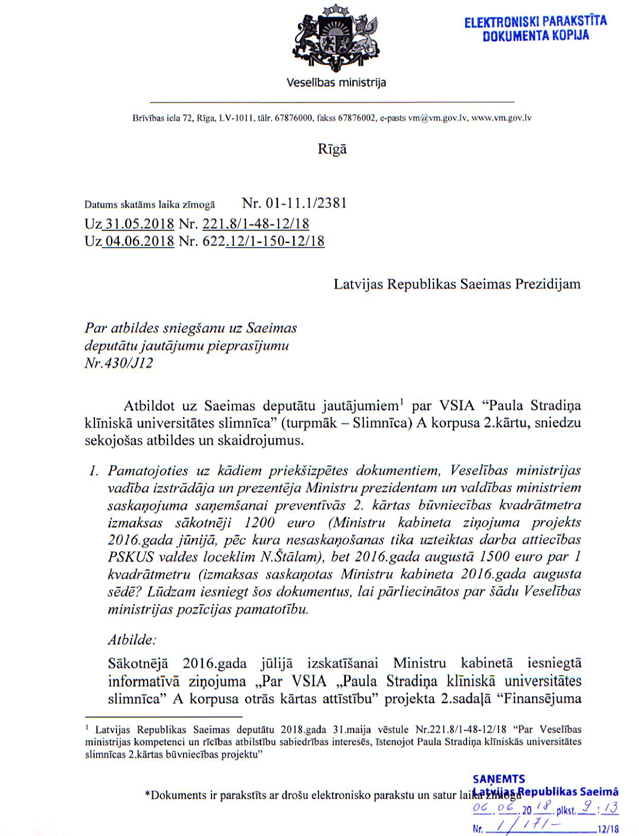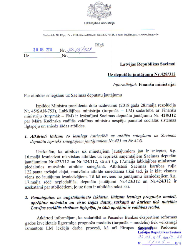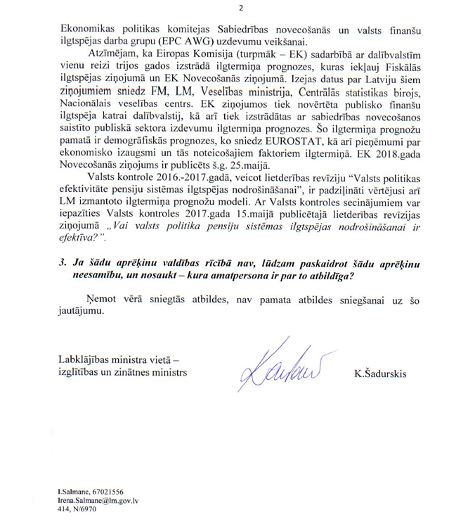 Otrkārt, par finansēm. Jo, jāteic, vakardien mēs apstiprinājām vienu likumprojektu, kur arī īsti labi nebija ar finansējumu... Un man vienkārši ir pienākums informēt par to, kas ir rakstīts Finanšu ministrijas atzinumā.