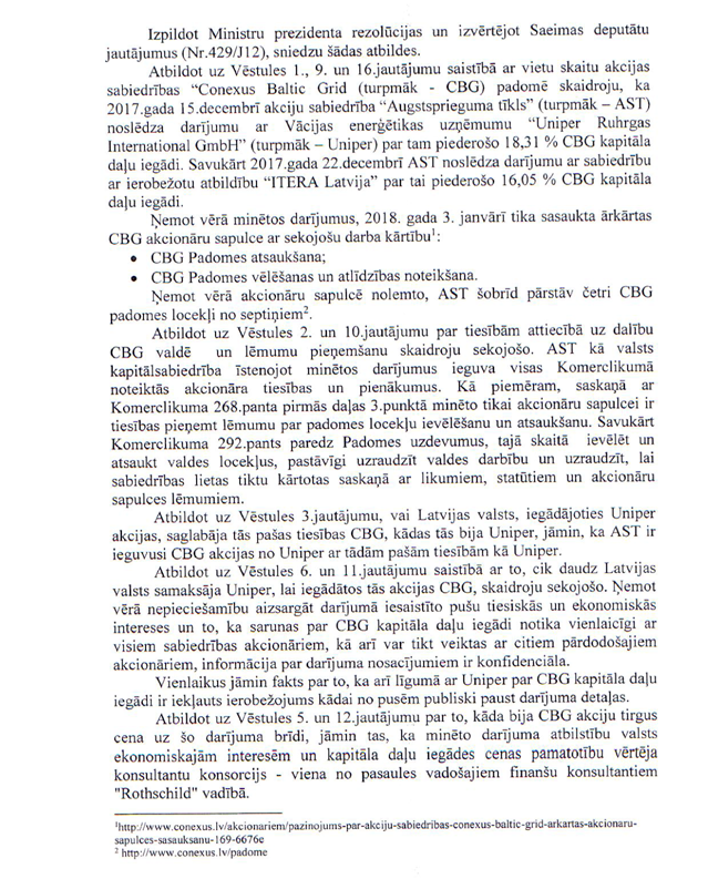Rakstveidā sniegtās atbildes uz deputātu jautājumiem
