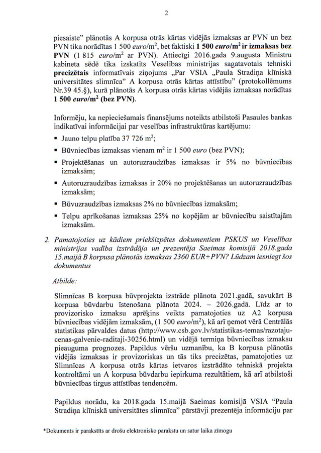 Arī likumprojekta anotācijā ir teikts: lai īstenotu šajā likumprojektā paredzēto, ir nepieciešami papildu izdevumi Kultūras ministrijai, Latvijas Nacionālajam arhīvam un Tieslietu ministrijai, kā arī Satversmes aizsardzības birojam. Kopumā nepieciešami 139 tūkstoši 883 eiro un 71 cents. Anotācijā ir detalizēti izklāstīts, kam šī nauda paredzēta – skapjiem, telpu kosmētiskajam remontam, videonovērošanas kamerām, galdiem, krēsliem, datortehnikai, darbinieku algām un tā tālāk. Diemžēl Finanšu ministrijas atzinumā norādīts, ka sagatavotie likuma grozījumi, kuru īstenošanai nepieciešams papildu finansējums, nevar tikt uzskatīti par neparedzētu gadījumu. Tātad attiecīgie izdevumi nevar tikt segti no valsts budžeta programmas "Līdzekļi neparedzētiem gadījumiem", jo neatbilst tās mērķim.