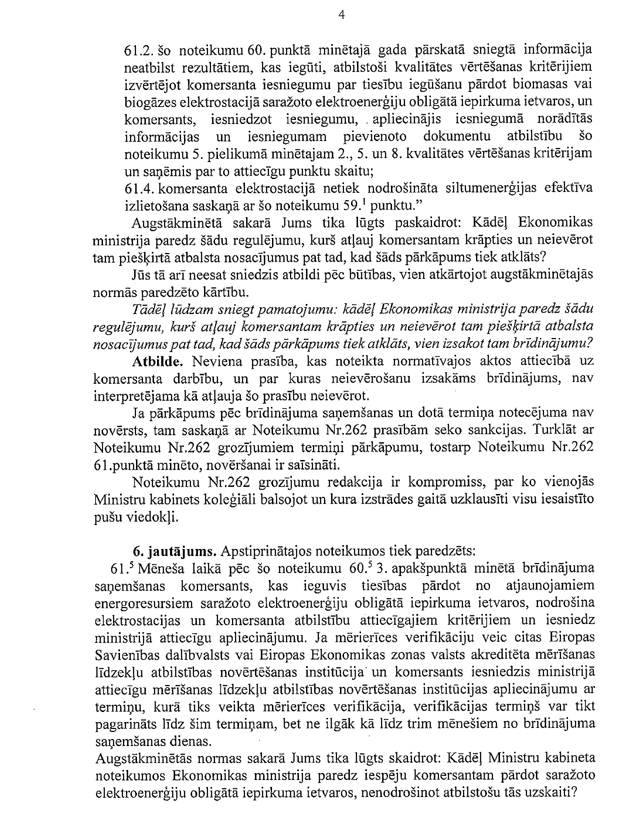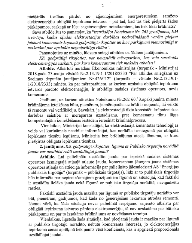 Pieprasījumu komisija lūdz sēdes darba kārtībā iekļaut deputātu Ivara Zariņa, Sergeja Potapkina, Artūra Rubika, Jāņa Tutina, Ivana Ribakova, Sergeja Mirska, Raimonda Rubika, Andra Morozova, Jāņa Ādamsona un Vitālija Orlova pieprasījumu ekonomikas ministram Arvilam Ašeradenam "Pamatot Ministru kabineta noteikumos Nr.262 "Noteikumi par elektroenerģijas ražošanu, izmantojot atjaunojamos energoresursus, un cenu noteikšanas kārtību" paredzētā "pārkompensācijas mehānisma" pamatotību un atbilstību Eiropas Savienības tiesību normām". Vai deputātiem ir iebildumi pret šo darba kārtības grozījumu? Iebildumu nav. Darba kārtība grozīta.