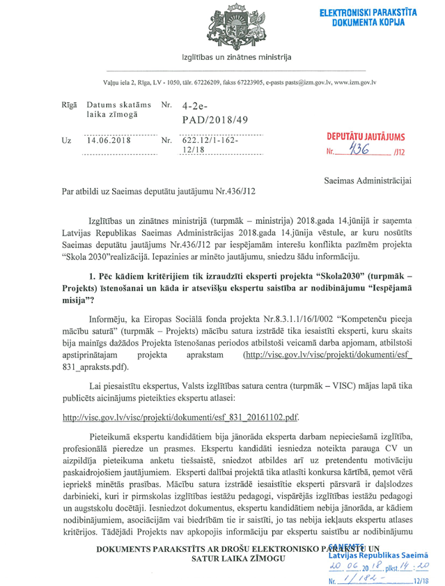 Un nobeigumā es citēšu Latvijas Universitātes rektora profesora Indriķa Muižnieka rakstīto par šo lēmuma projektu: "Tā pieņemšana Saeimā varētu beidzot dot nepieciešamo impulsu Latvijas augstākās izglītības, zinātnes un tehnoloģiju pārneses sistēmas attīstībai."