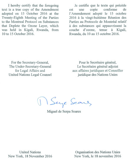 Amendment to the Montreal Protocol on Substances that Deplete the Ozone Layer