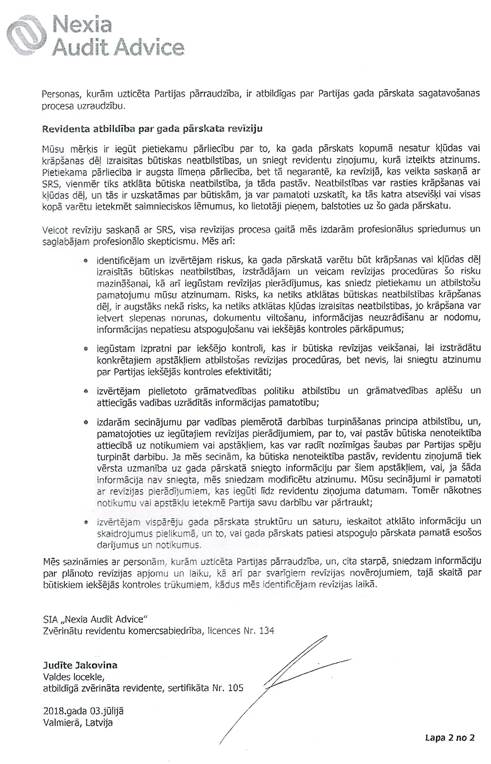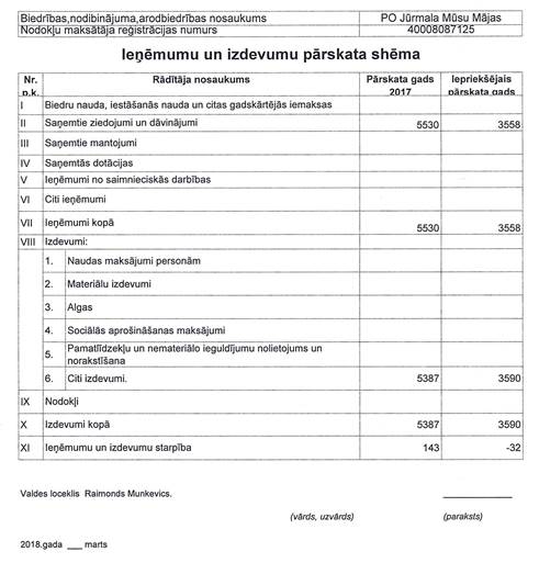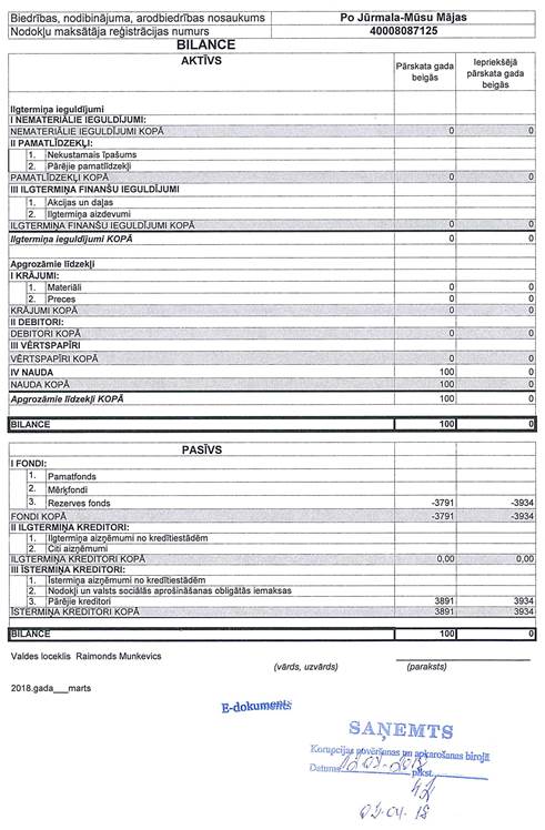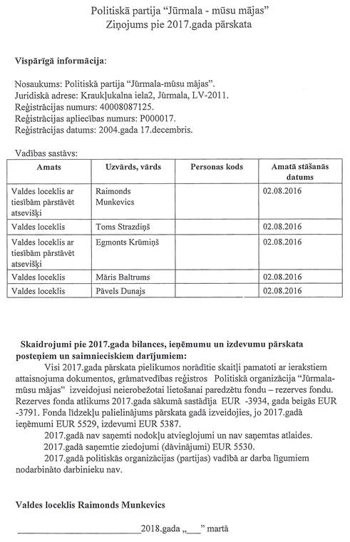 Politiskās partijas "Jūrmala-mūsu mājas", reģ. Nr. 40008087125, precizēts gada pārskats par 2017.gadu