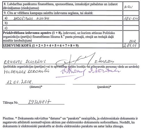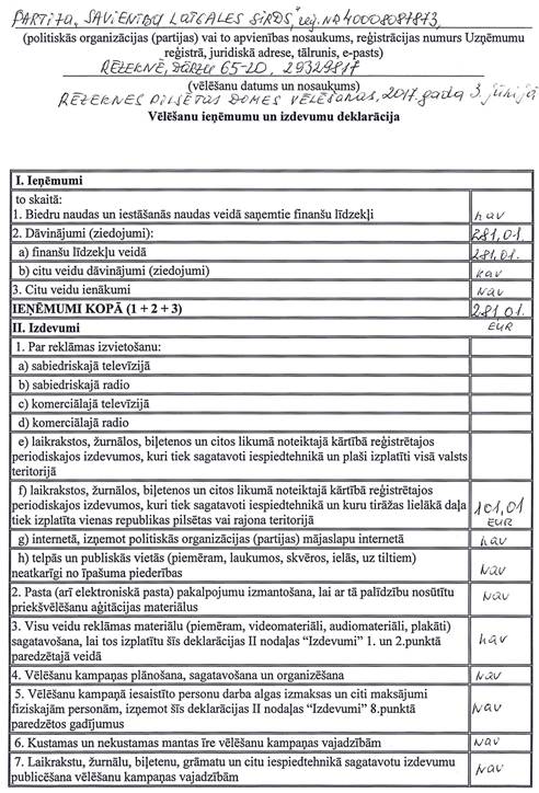 Politiskās partijas "Savienība Latgales sirds", reģ. Nr. 40008087873, vēlēšanu ieņēmumu un izdevumu deklarācija
