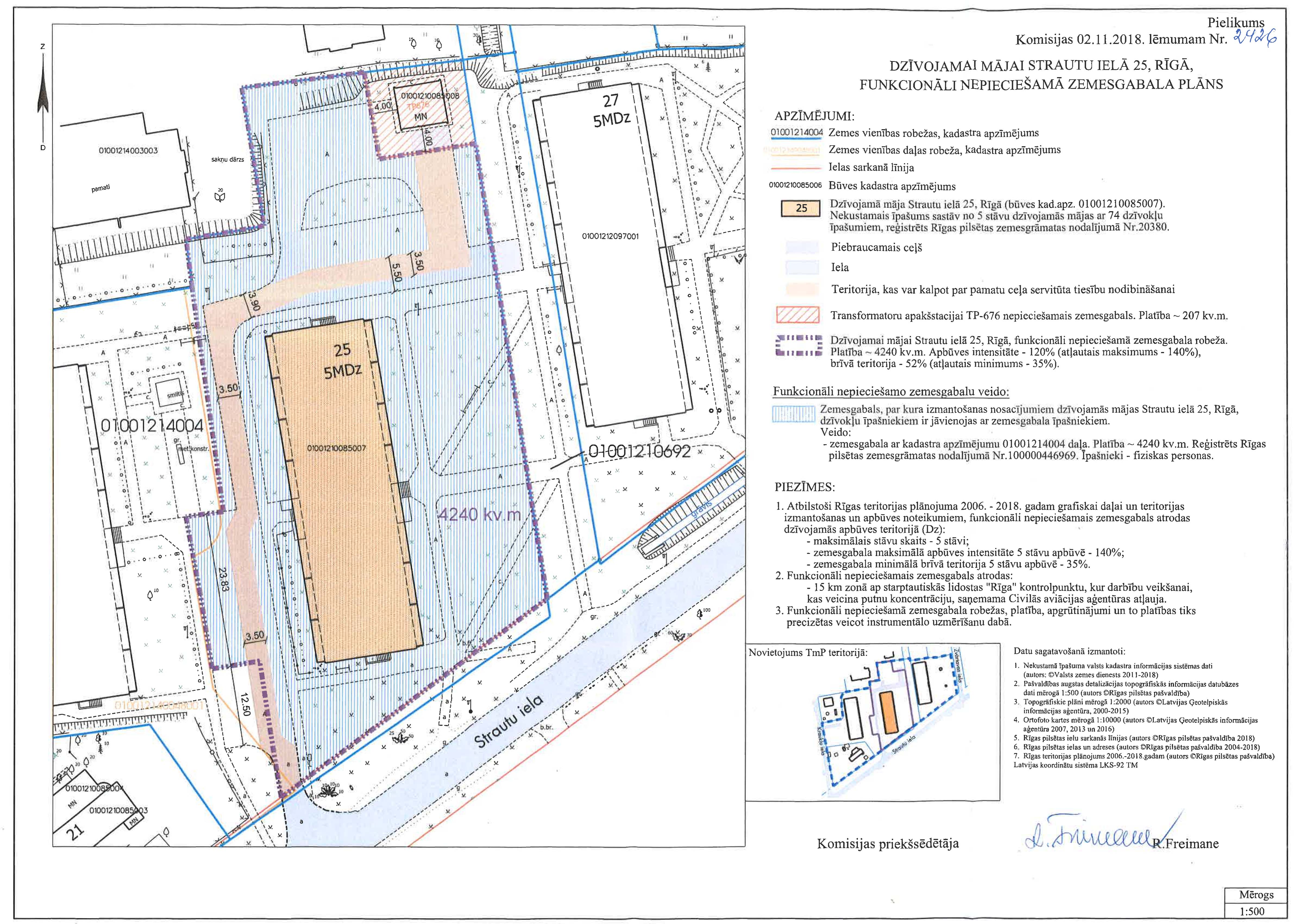 2. Noteikt, ka dzīvojamai mājai Strautu ielā 25, Rīgā, funkcionāli nepieciešamā zemesgabala platība ir 4240 m2.