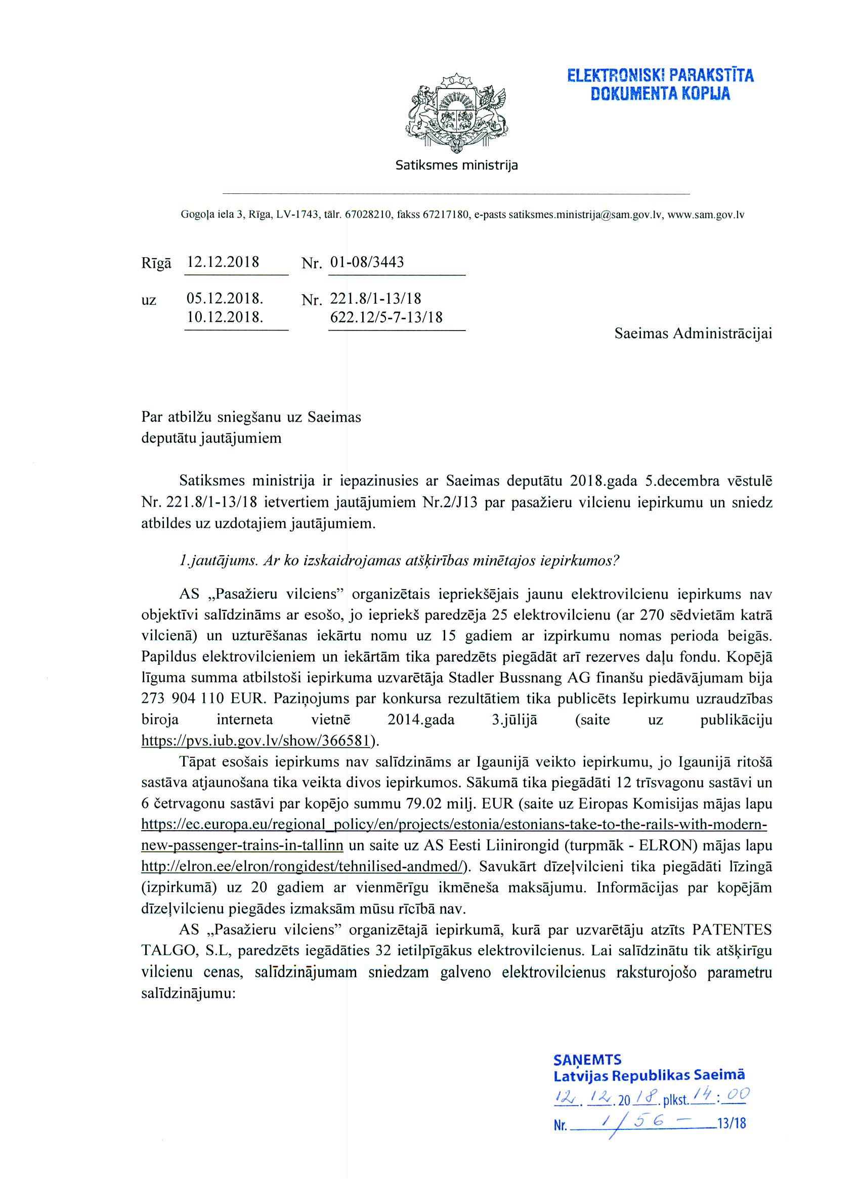 Sēdes vadītāja. Labrīt, godātie deputāti! Aicinu ieņemt vietas Sēžu zālē, lai varam sākt Saeimas 2018. gada 13. decembra sēdi.