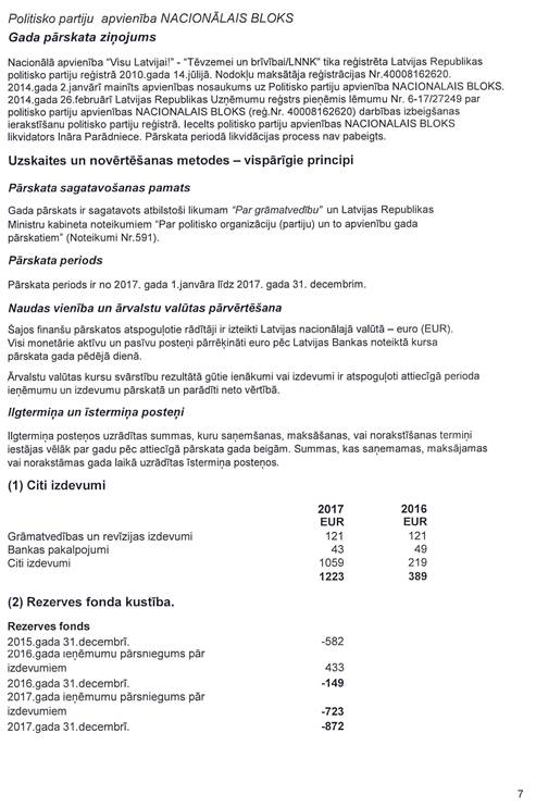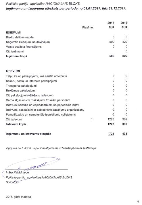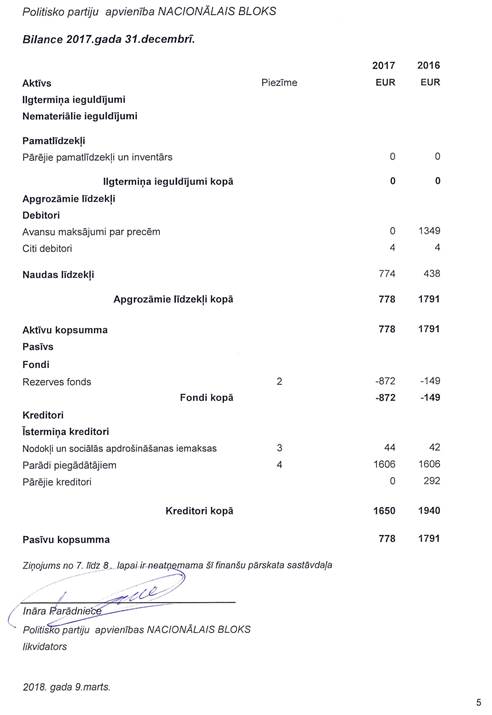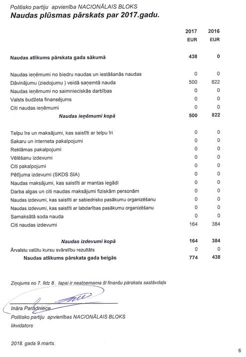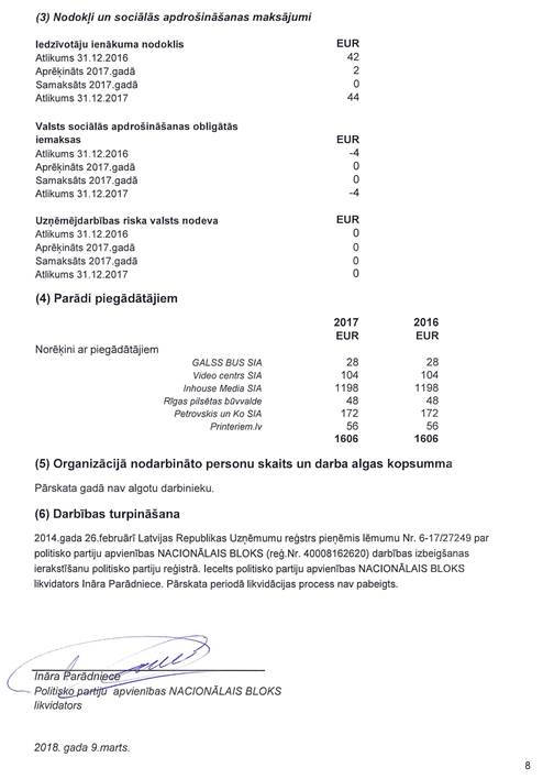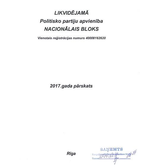 Likvidējamās politisko partiju apvienības "Nacionālais bloks", reģ. Nr. 40008162620, gada pārskats par 2017.gadu