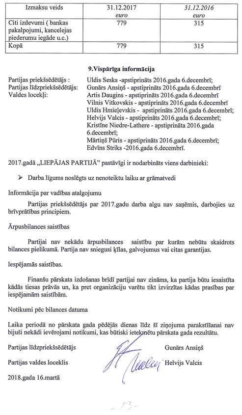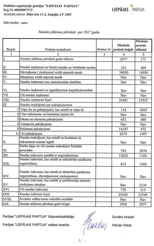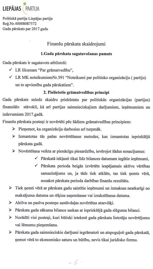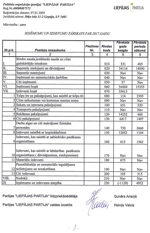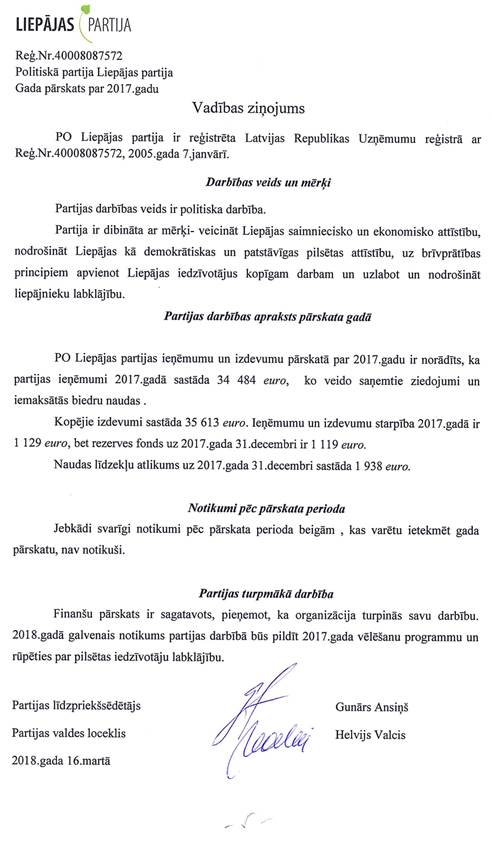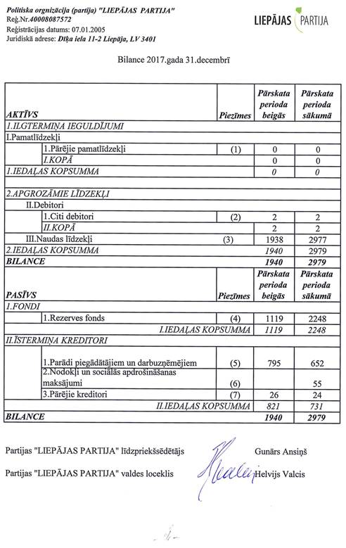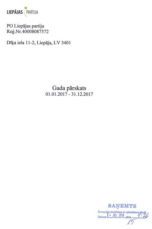 Politiskās partijas "Liepājas partija", reģ. Nr. 40008087572, gada pārskats par 2017.gadu