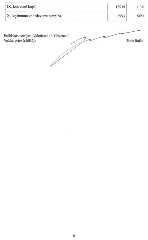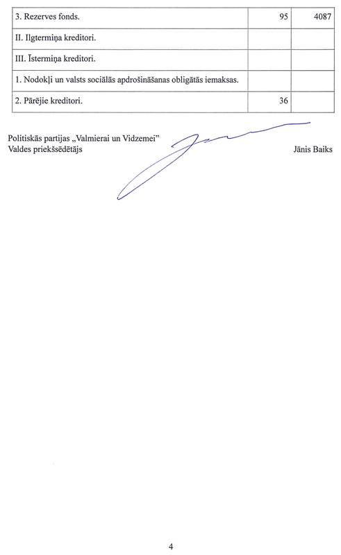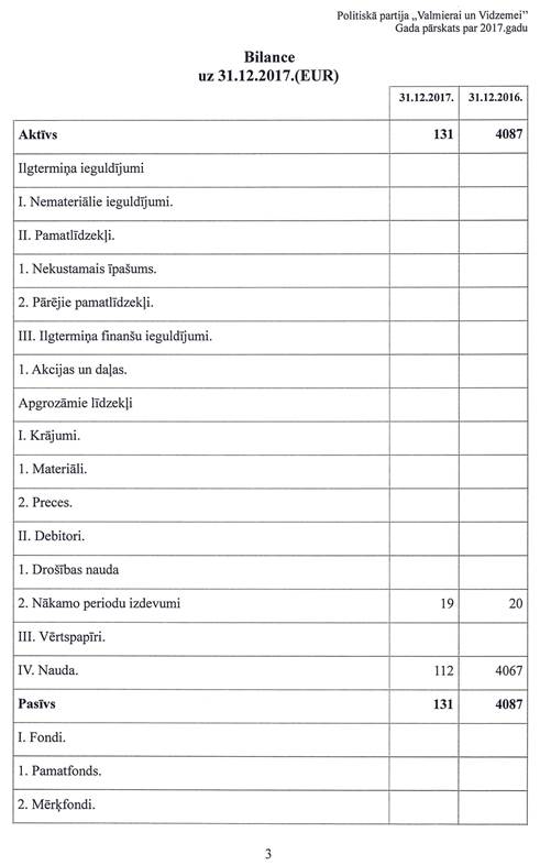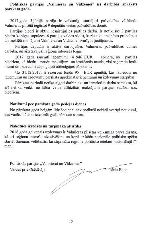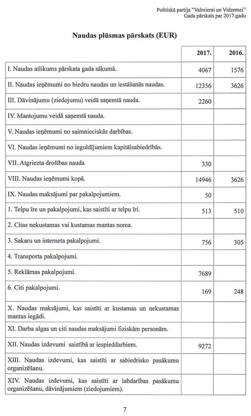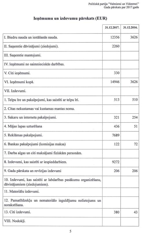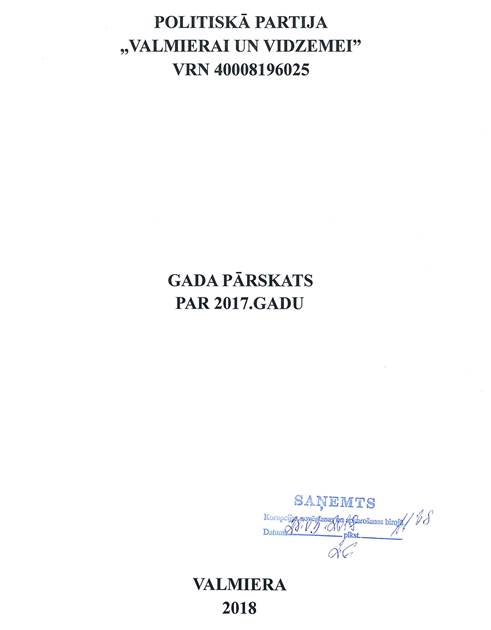 Politiskās partijas "Valmierai un Vidzemei", reģ. Nr. 40008196025, gada pārskats par 2017.gadu