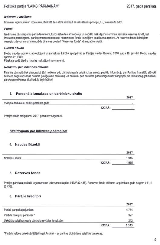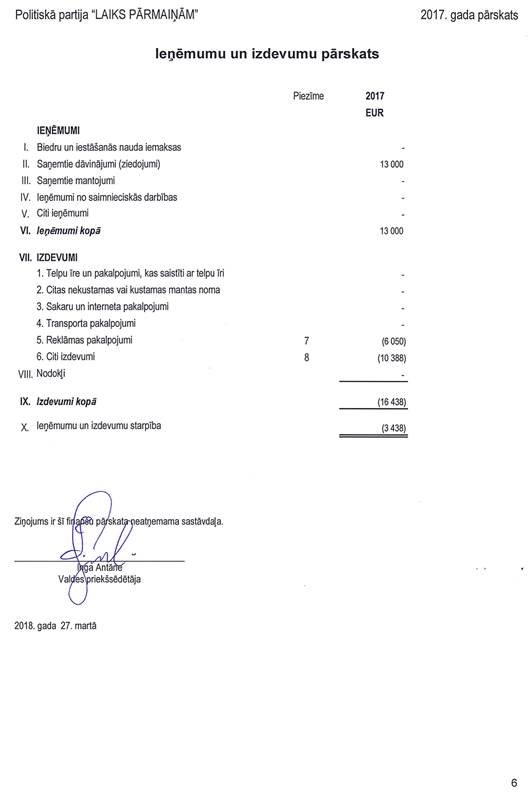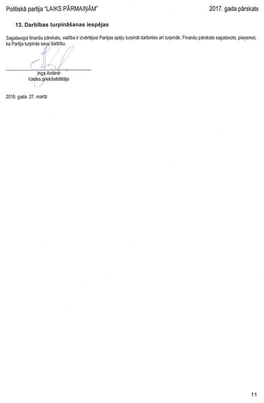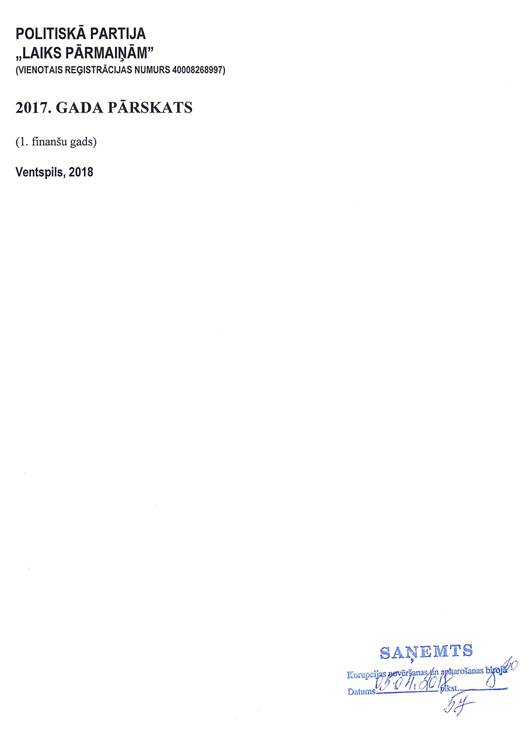 Politiskās partijas "LAIKS PĀRMAIŅĀM", reģ. Nr. 40008268997, gada pārskats par 2017.gadu