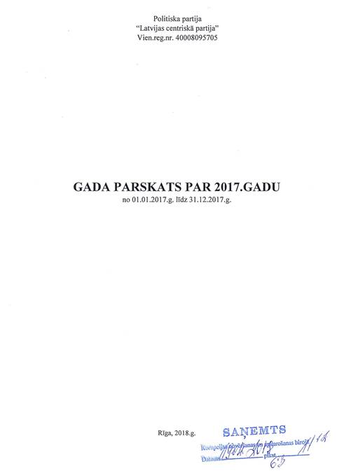 Politiskās partijas "Latvijas centriskā partija", reģ. Nr. 40008095705, gada pārskats par 2017. gadu