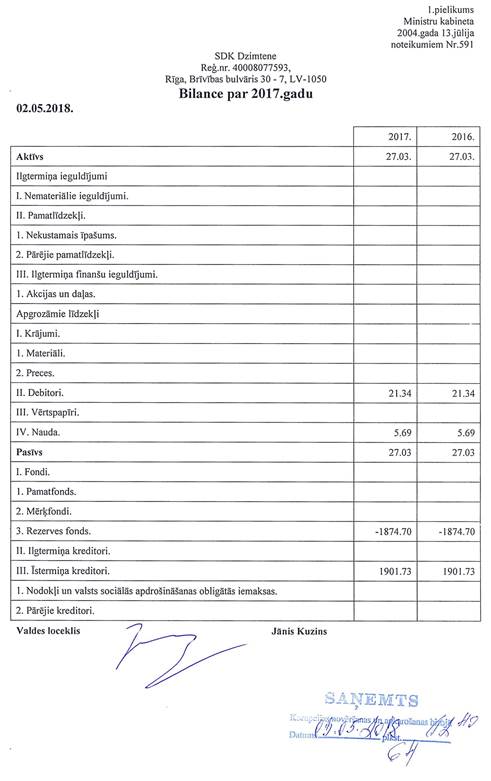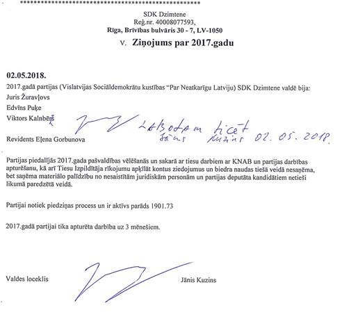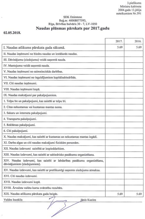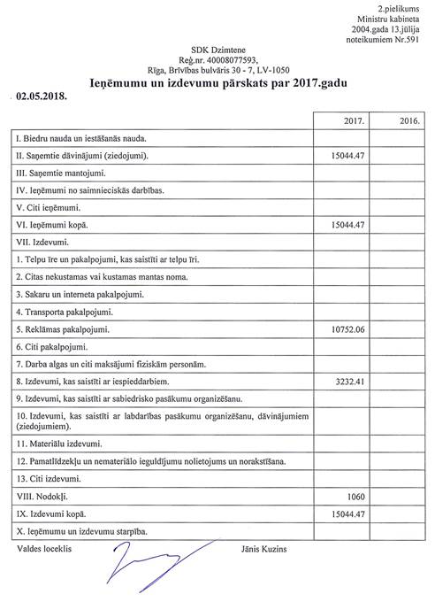 Politiskās partijas "SDK Dzimtene", reģ. Nr. 40008077593, gada pārskats par 2017.gadu