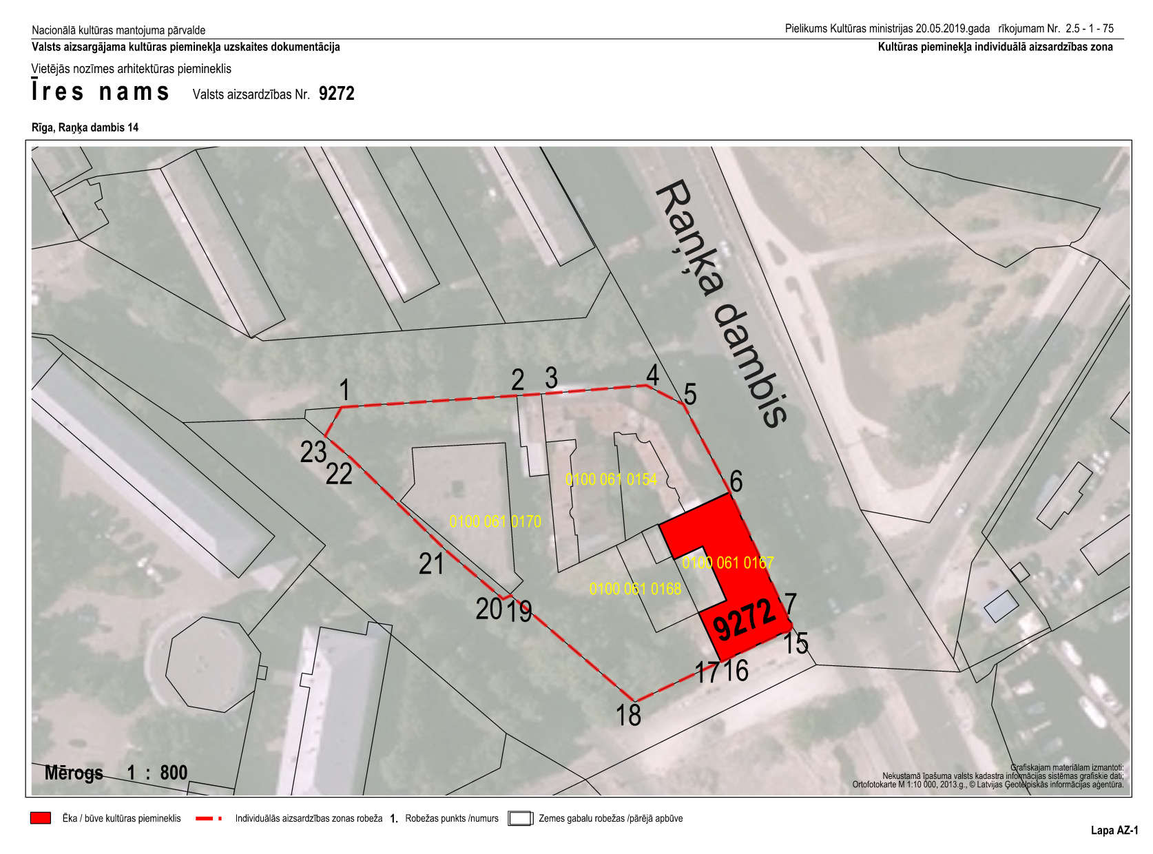 1. Pārvalde ir iesniegusi Kultūras ministrijā rīkojuma projektu par īres nama Rīgā, Raņķa dambis 14 (būves kadastra apzīmējums: 0100 061 0167 001) (turpmāk – Objekts) iekļaušanu Pieminekļu sarakstā. Rīkojuma projektam klāt pievienoti šādi dokumenti: