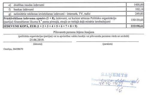 Politisko partiju apvienības "Attīstībai/Par!", reģ. Nr. 40008275931, Eiropas Parlamenta vēlēšanu ieņēmumu un izdevumu deklarācija
