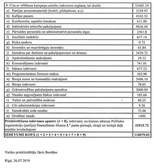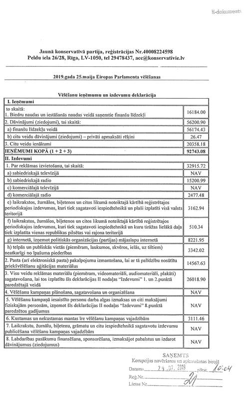 Politiskās partijas "Jaunā konservatīvā partija", reģ. Nr. 40008224598, precizēta 2019.gada 25.maija Eiropas Parlamenta vēlēšanu ieņēmumu un izdevumu deklarācija