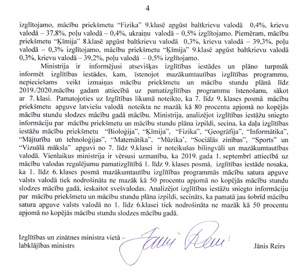 Par deputātu Kabanova, Ribakova, Agešina, Tutina un Krišāna jautājumu izglītības un zinātnes ministra pienākumu izpildītājam Jānim Reiram "Par pamatizglītības standartu" – saņemtā rakstveida atbilde iesniedzējus apmierina.