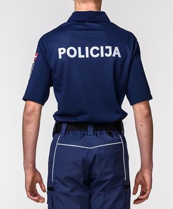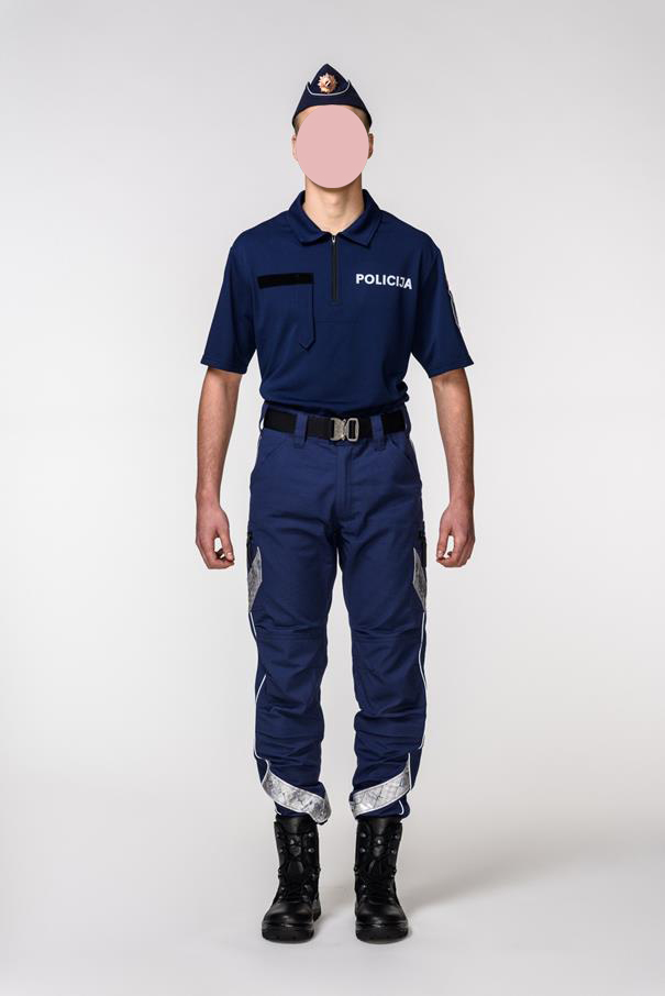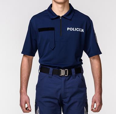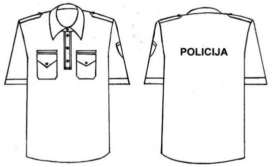 1. Polo krekls ar īsām piedurknēm – polo krekls (8. un 9. attēls) tumši zilā, pelēkā vai baltā krāsā. Priekšdaļā kreisajā pusē krūšu līmenī uzraksts "POLICIJA". Priekšdaļā labajā pusē krūšu līmenī personas identifikācijas zīme, zem tās – dienesta pakāpes zīme. Muguras daļā gaismu atstarojošs uzraksts "POLICIJA". Uz kreisās piedurknes Latvijas valsts karoga emblēma, zem tās – Valsts policijas emblēma.