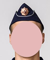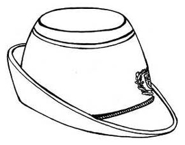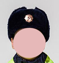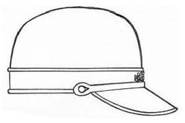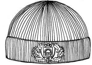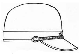 10. Cepure ar nagu – oderēta cepure ar nagu (33. attēls) tumši zilā krāsā ar pelēku iemalojumu. Priekšpusē vidū izvietota Valsts policijas kokarde.
