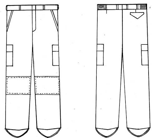 18. attēls. Viegla auduma vai blīva auduma bikses. Sānskats
