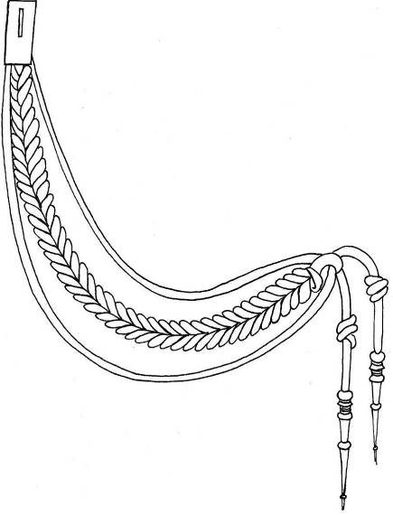 7.12. ģenerālim – uz atšķirības zīmes simetriski vidū vertikāli visā tās garumā izvietota zīmotne četru auklu pīnes veidā (19. attēls)