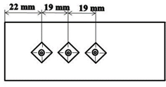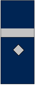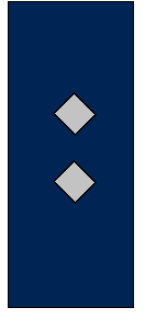 7.6. leitnantam – uz atšķirības zīmes simetriski vidū vertikāli viena zem otras izvietotas divas 12 x 12 mm lielas zīmotnes romba veidā (13. attēls)