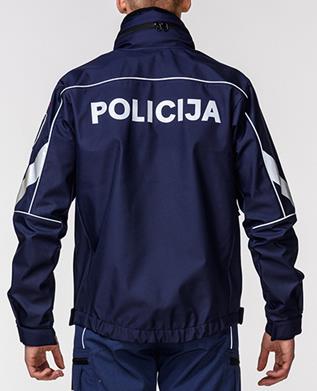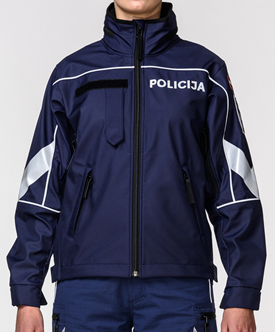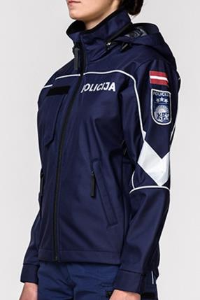 3. Virsjaka – elastīga, vēja un ūdensnecaurlaidīga virsjaka (13.–15. attēls) tumši zilā krāsā. Uz piedurknēm gaismu atstarojošas joslas. Priekšdaļā kreisajā pusē krūšu līmenī gaismu atstarojošs uzraksts "POLICIJA". Priekšdaļā labajā pusē krūšu līmenī personas identifikācijas zīme, zem tās – dienesta pakāpes zīme. Muguras daļā gaismu atstarojošs uzraksts "POLICIJA". Uz kreisās piedurknes Latvijas valsts karoga emblēma, zem tās – Valsts policijas emblēma.