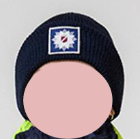11. Adīta cepure – cepure ar atloka daļu (34. attēls) tumši zilā krāsā. Priekšdaļā atlocījuma vidū piešūts austs Valsts policijas kokardes attēls.