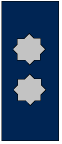 7.10. pulkvežleitnantam – uz atšķirības zīmes simetriski vidū vertikāli viena zem otras izvietotas divas zīmotnes astoņstaru zvaigznes veidā (17. attēls)