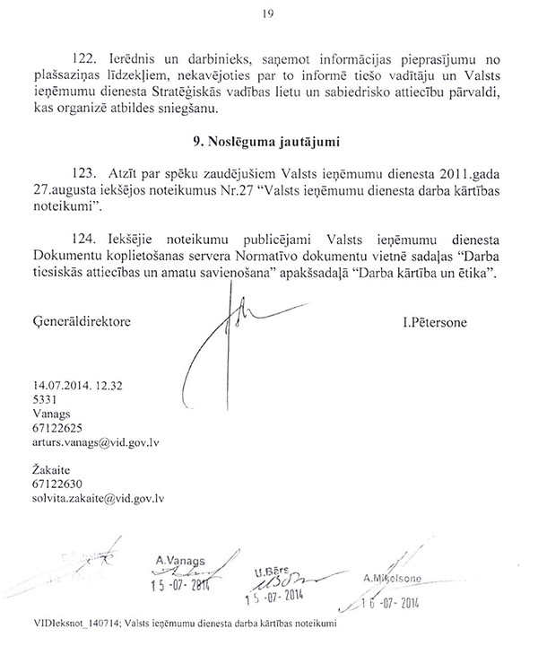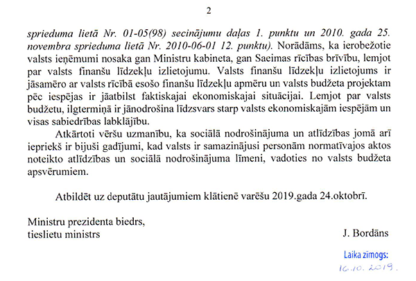 Godātie kolēģi! Darba kārtība ir izskatīta, bet vēl ir informācija par atbilžu sniegšanu uz deputātu jautājumiem 2019. gada 24. oktobrī.