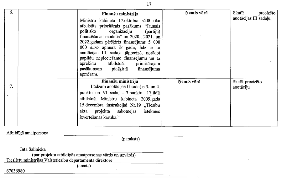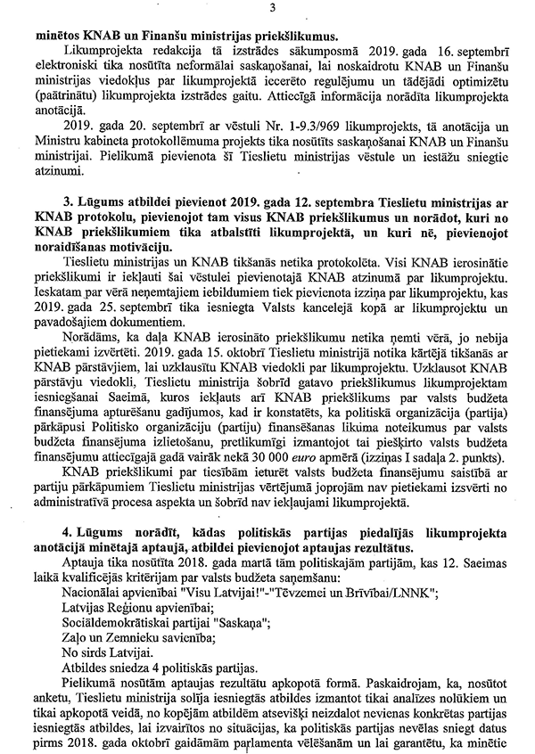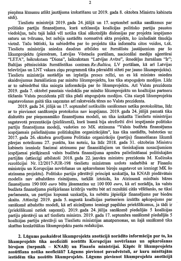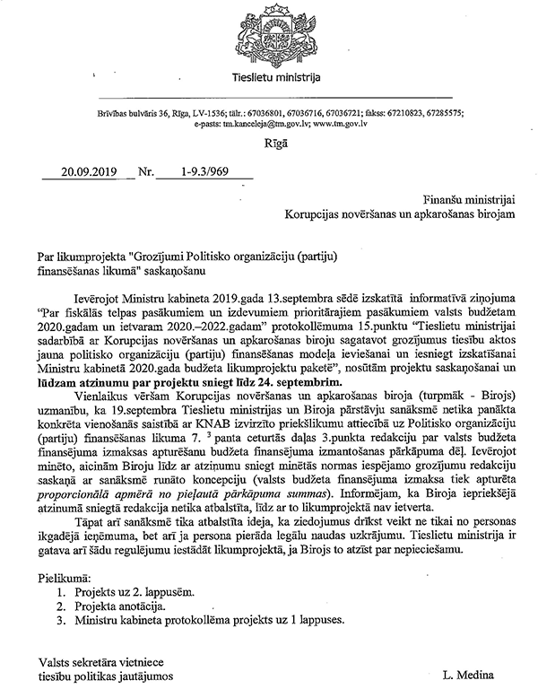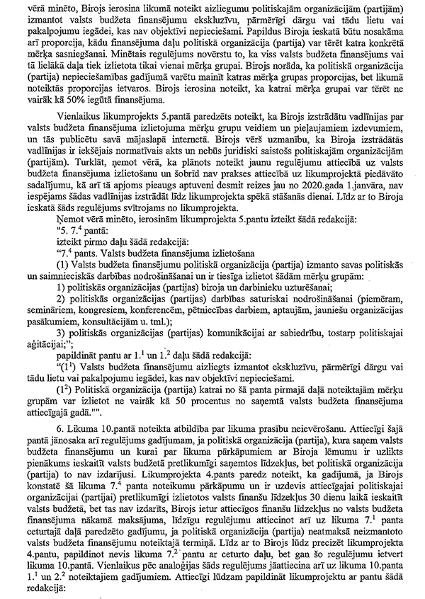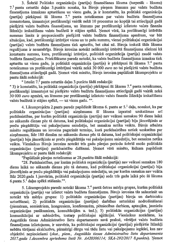 Tādējādi var uzskatīt, ka virzībai Saeimā šobrīd ir iesniegts jauns administratīvi teritoriālā iedalījuma projekts, kas nav pienācīgi apspriests ar pašvaldībām, tāpēc, ievērojot Saeimas 2019. gada 21. marta paziņojumā nolemto, šodien ir iespējams tikai viens tiesisks Saeimas lēmums – neatbalstīt un noraidīt šī likumprojekta tālāku virzību Saeimā, kā arī atkārtoti uzdot Ministru kabinetam izstrādāt pamatotu un atbildīgu jaunu administratīvās teritorijas iedalījuma projektu un uzdot par to rīkot konsultācijas ar pašvaldībām saskaņā ar Eiropas vietējo pašvaldību hartas 5. pantu.