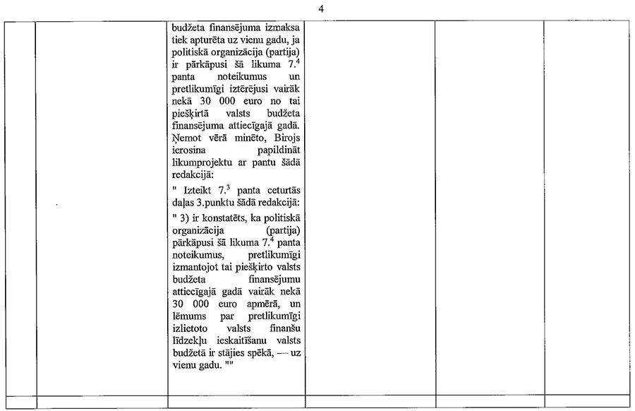 R. Ločmele-Luņova. 4. – deputāta Mārtiņa Bondara priekšlikums, kas skar likuma grozījumu stāšanos spēkā. Komisijā netika atbalstīts sakarā ar to, ka iepriekšējie divi Mārtiņa Bondara priekšlikumi komisijā netika atbalstīti.