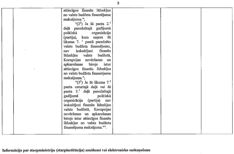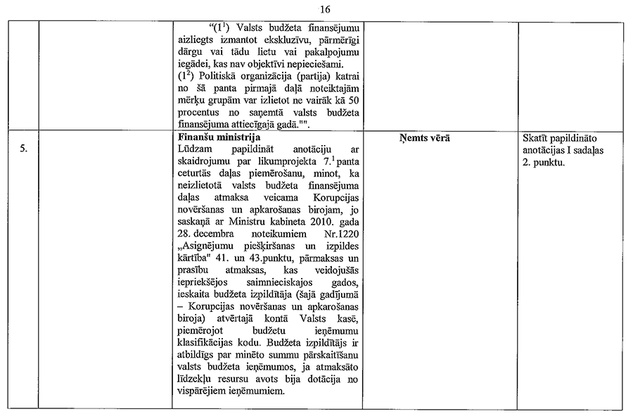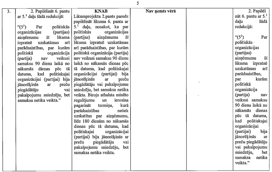 R. Ločmele-Luņova. 5. – Juridiskā biroja priekšlikums, lai grozījumi šā likuma 14. panta otrajā un trešajā daļā, kā arī šā likuma 17. un 18. pants stātos spēkā vienlaikus ar Administratīvās atbildības likumu. Atbalstīts komisijā.
