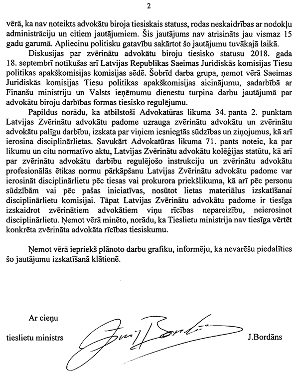 Šodien darba kārtībā ir viens jautājums. Deputāti Krauze, Daudze, Augulis, Vucāns un Valainis uzdevuši jautājumu tieslietu ministram Jānim Bordānam "Par zvērināta advokāta pakalpojumu sniegšanu komercdarbības ietvaros".