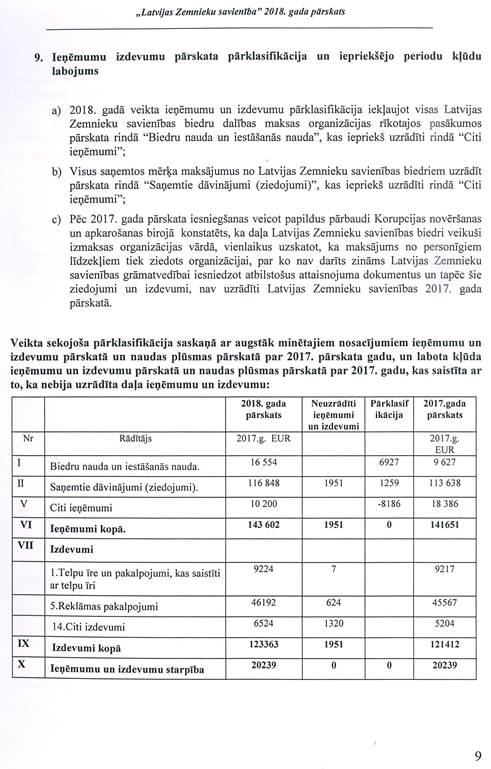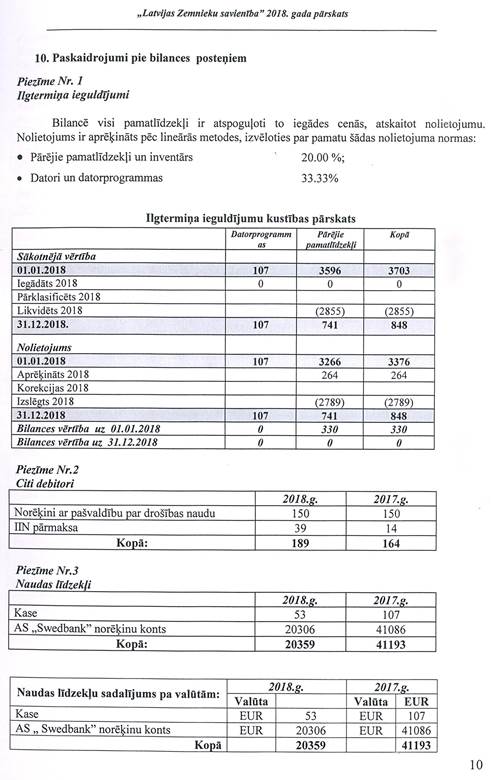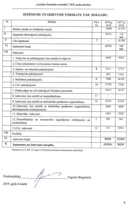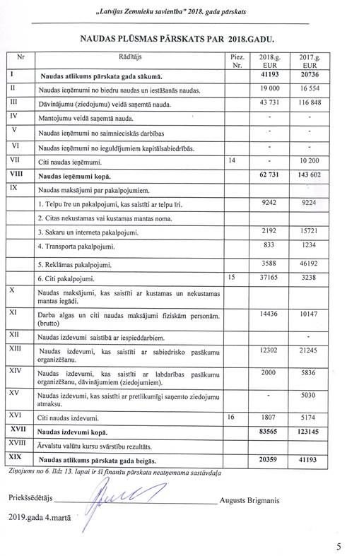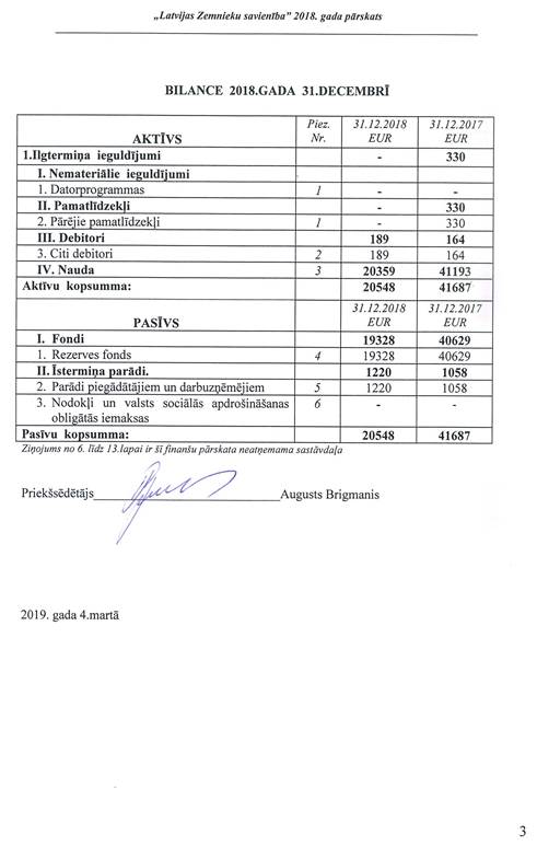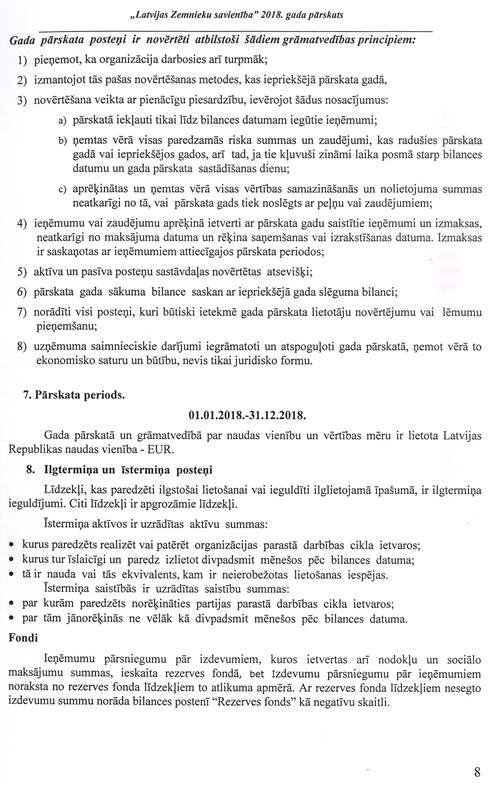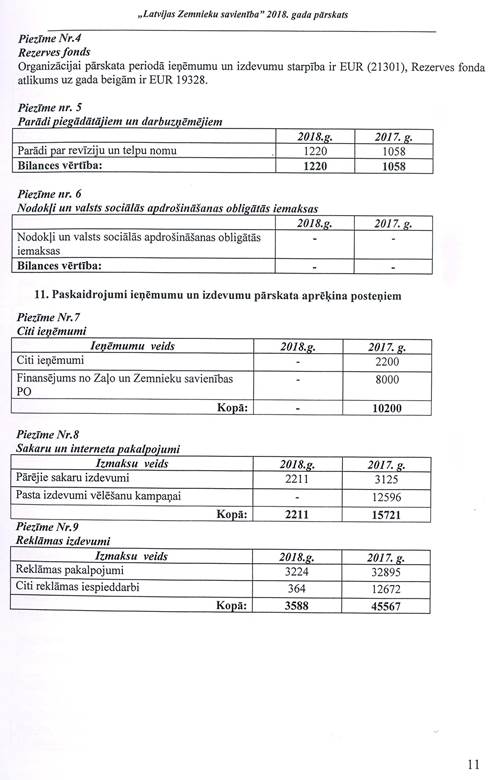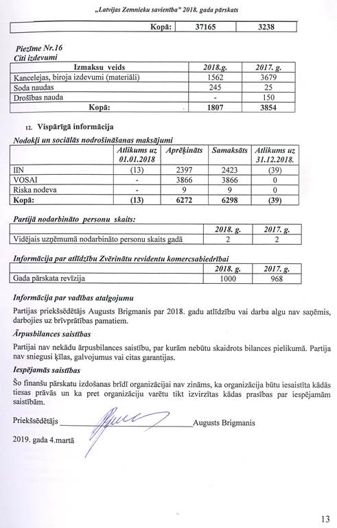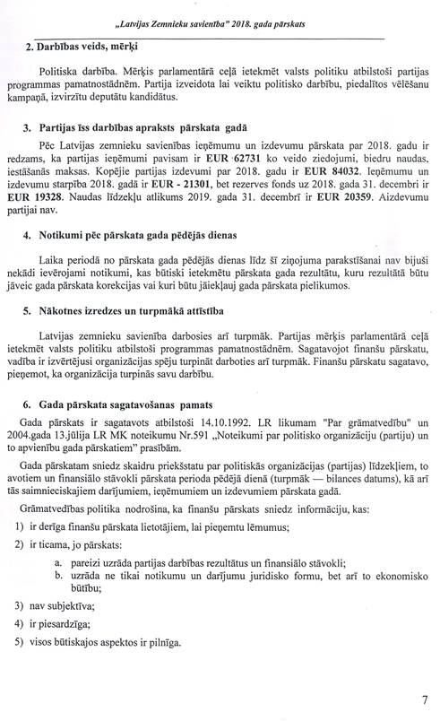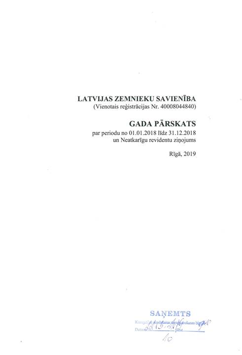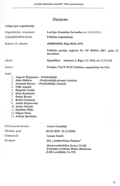 Politiskās partijas "LATVIJAS ZEMNIEKU SAVIENĪBA", reģ. Nr. 40008044840, gada pārskats par 2018.gadu
