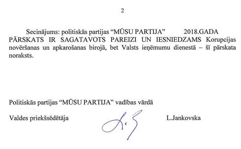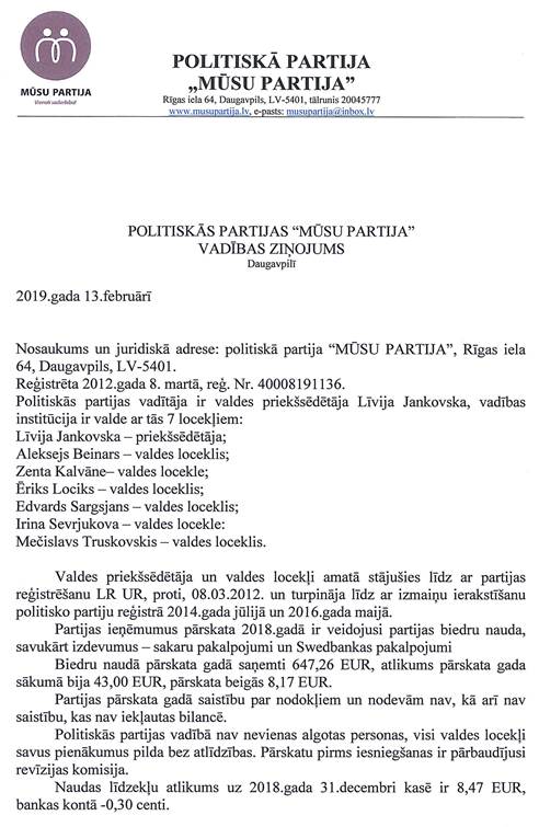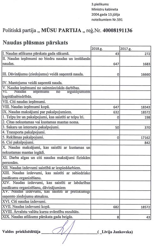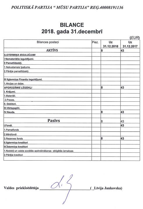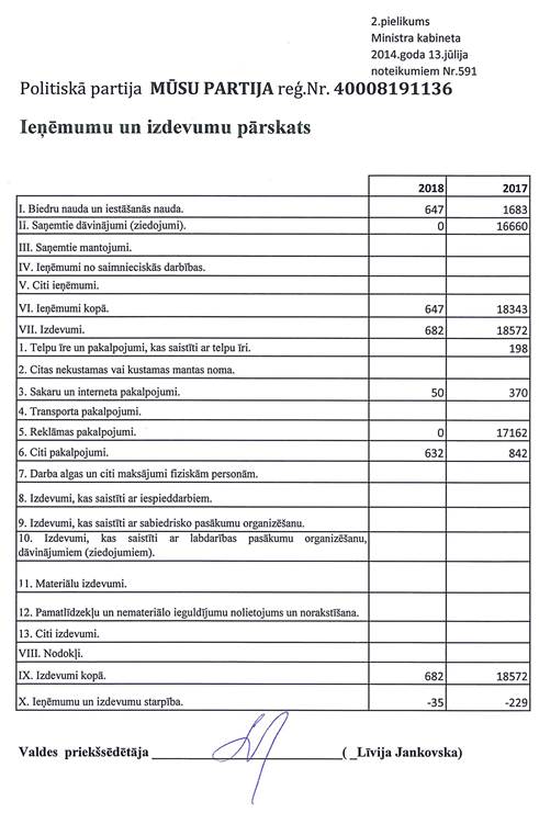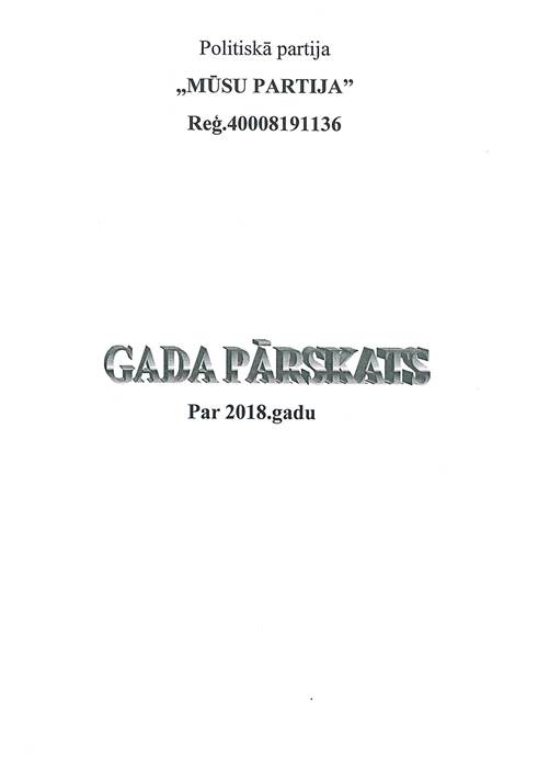 Politiskās partijas "MŪSU PARTIJA", reģ. Nr. 40008191136, gada pārskats par 2018.gadu