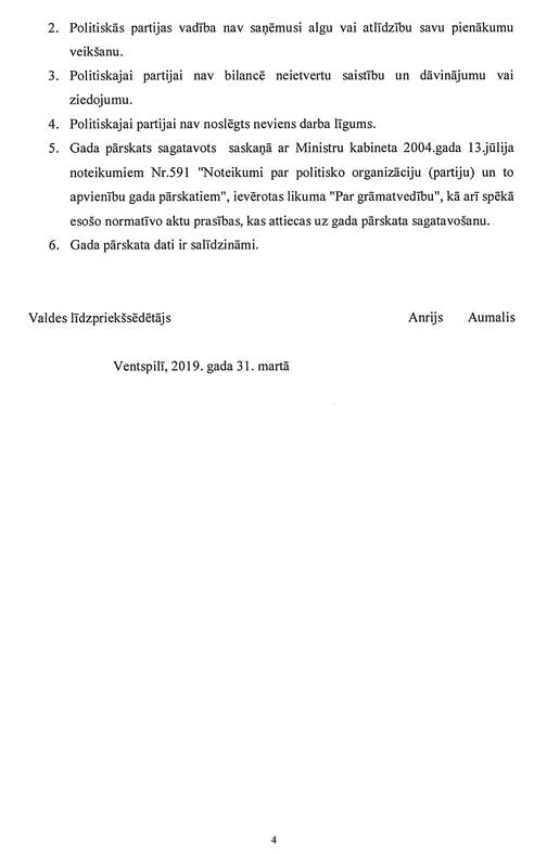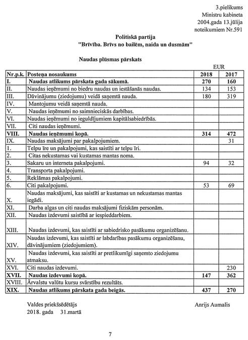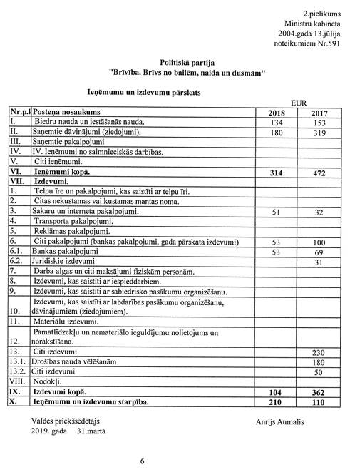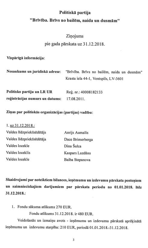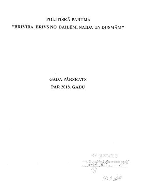 Politiskās partijas "Brīvība. Brīvs no bailēm, naida un dusmām", reģ. Nr. 40008182133, gada pārskats par 2018.gadu