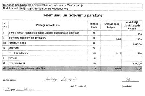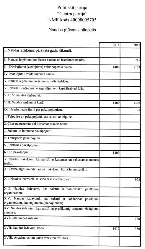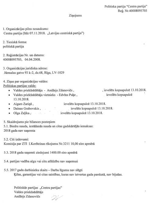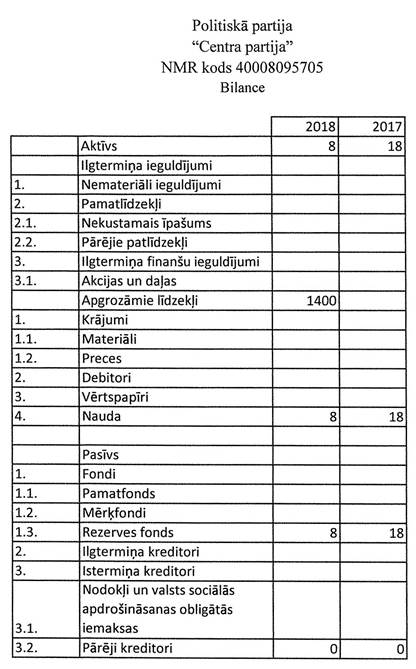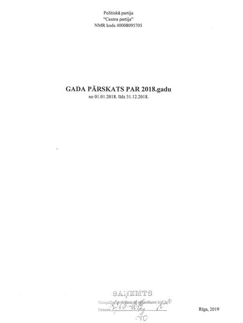Politiskās partijas "Centra partija", reģ. Nr. 40008095705, gada pārskats par 2018.gadu