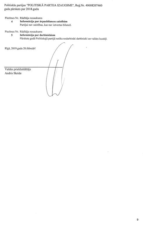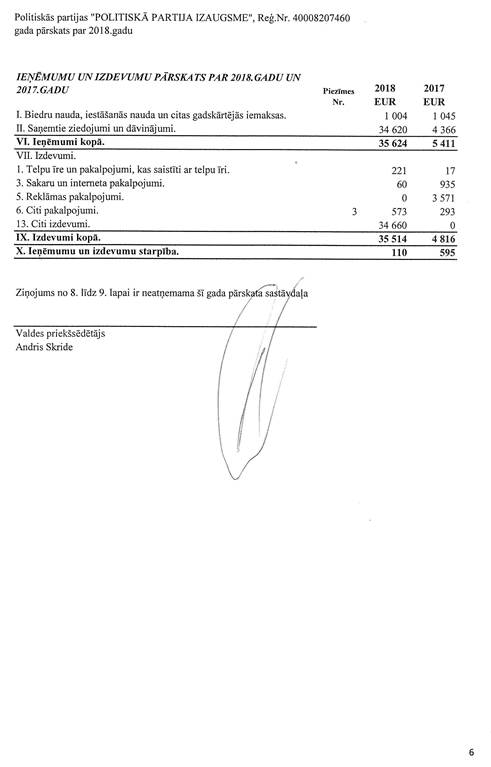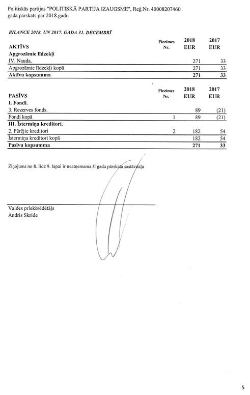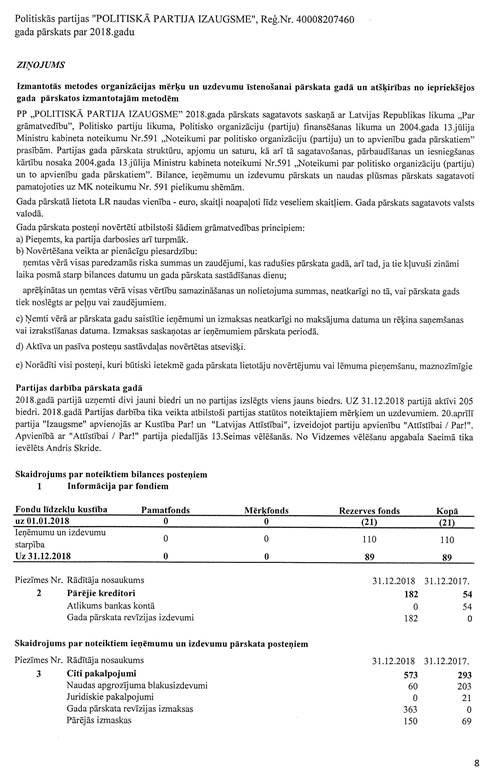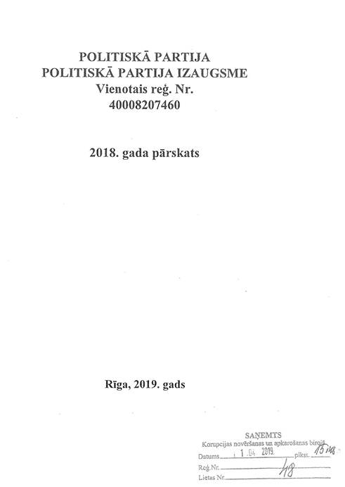 Politiskās partijas "POLITISKĀ PARTIJA IZAUGSME", reģ. Nr. 40008207460, gada pārskats par 2018.gadu