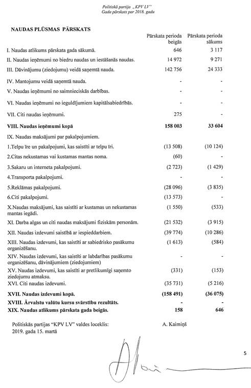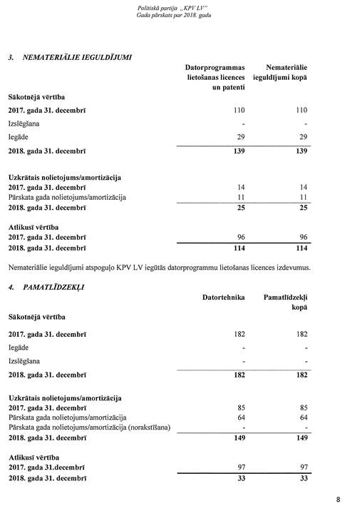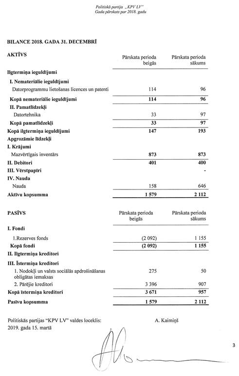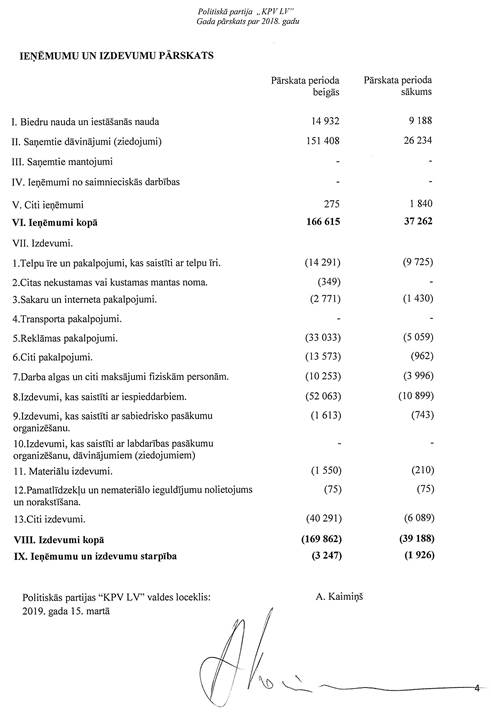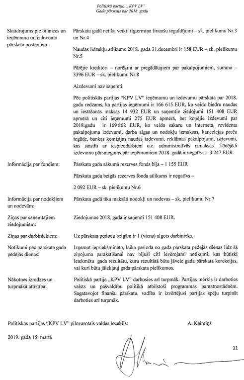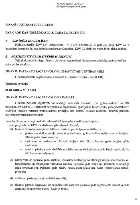 Politiskās partijas "KPV LV", reģ. Nr. 40008253188, gada pārskats par 2018.gadu
