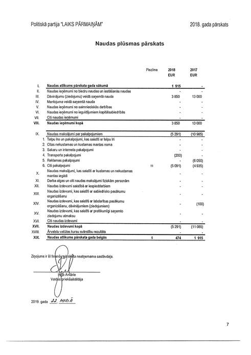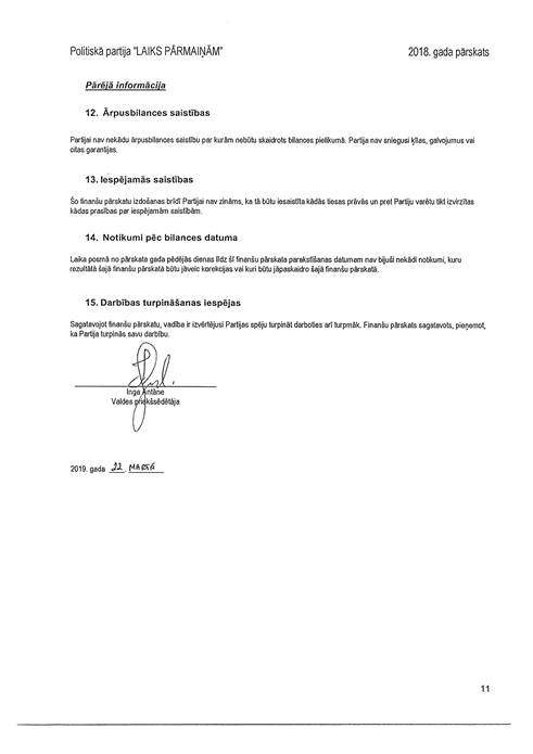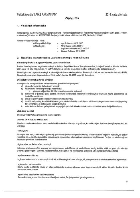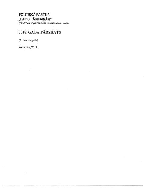 Politiskās partijas "LAIKS PĀRMAIŅĀM", reģ. Nr. 40008268997, gada pārskats par 2018.gadu
