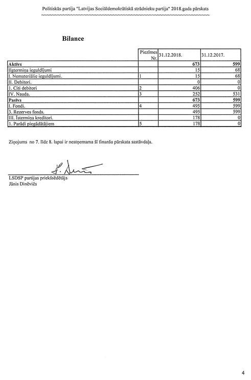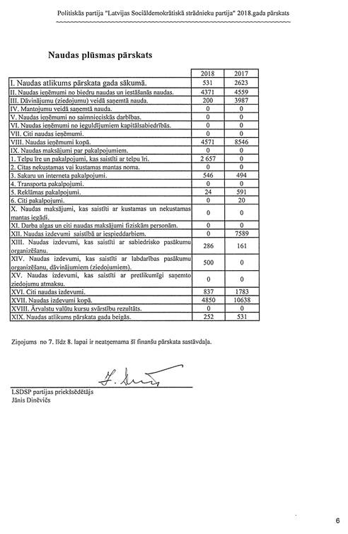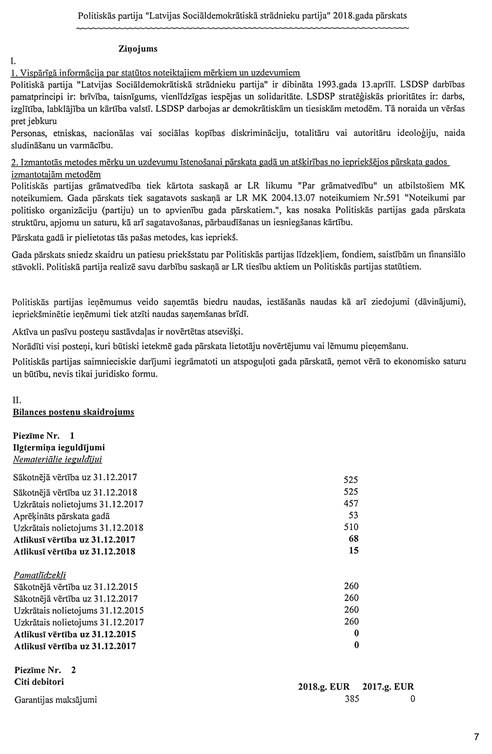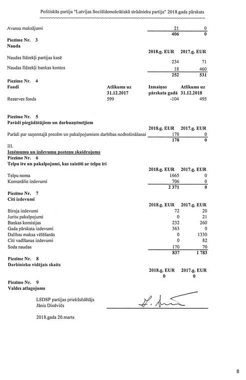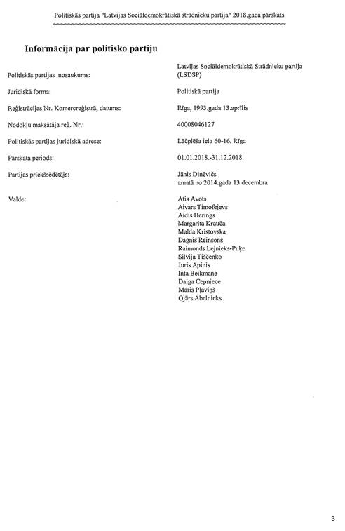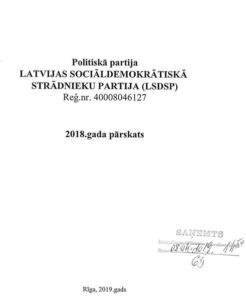 Politiskās partijas "Latvijas sociāldemokrātiskā strādnieku partija", reģ. Nr. 40008046127, gada pārskats par 2018.gadu